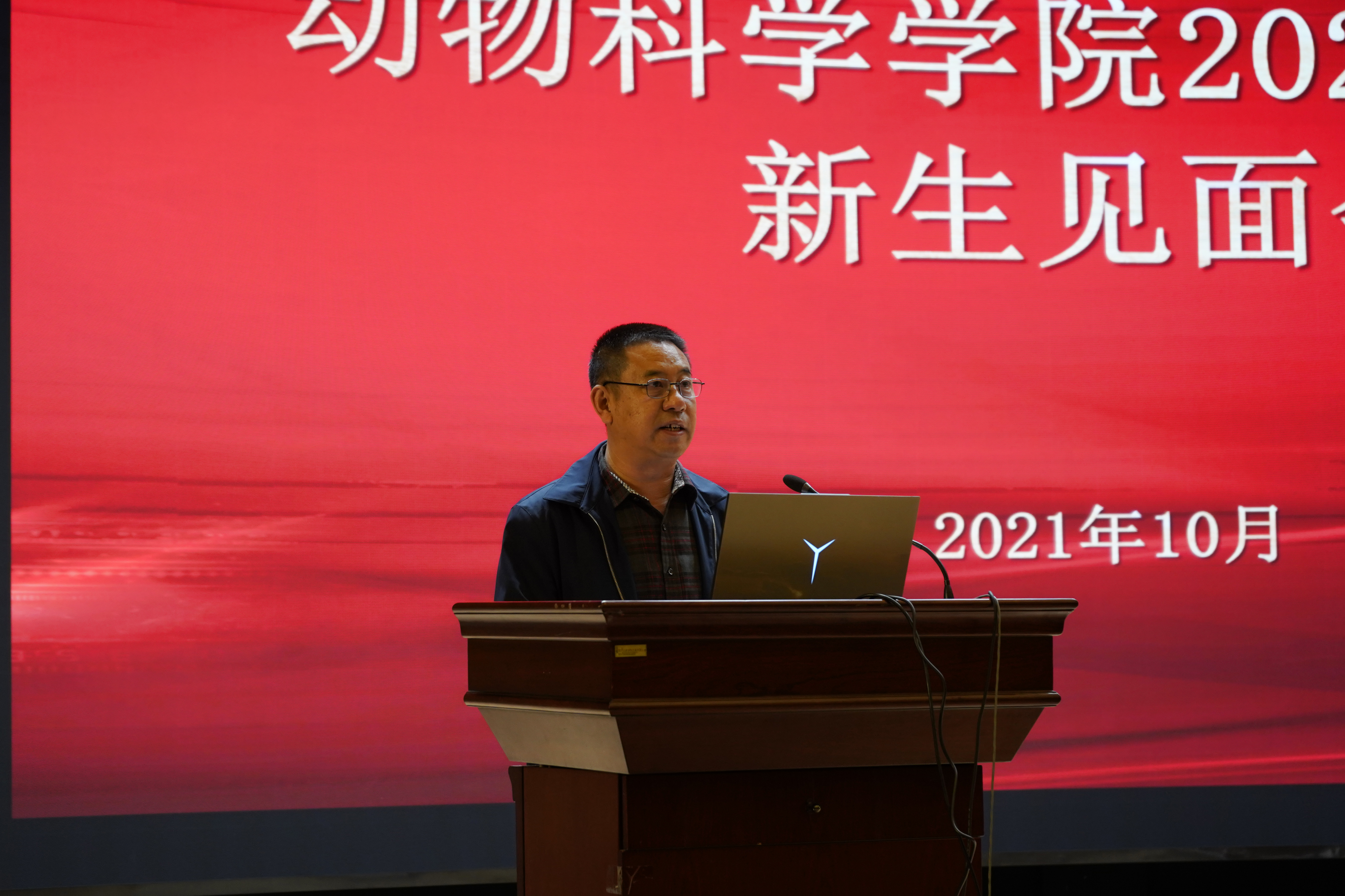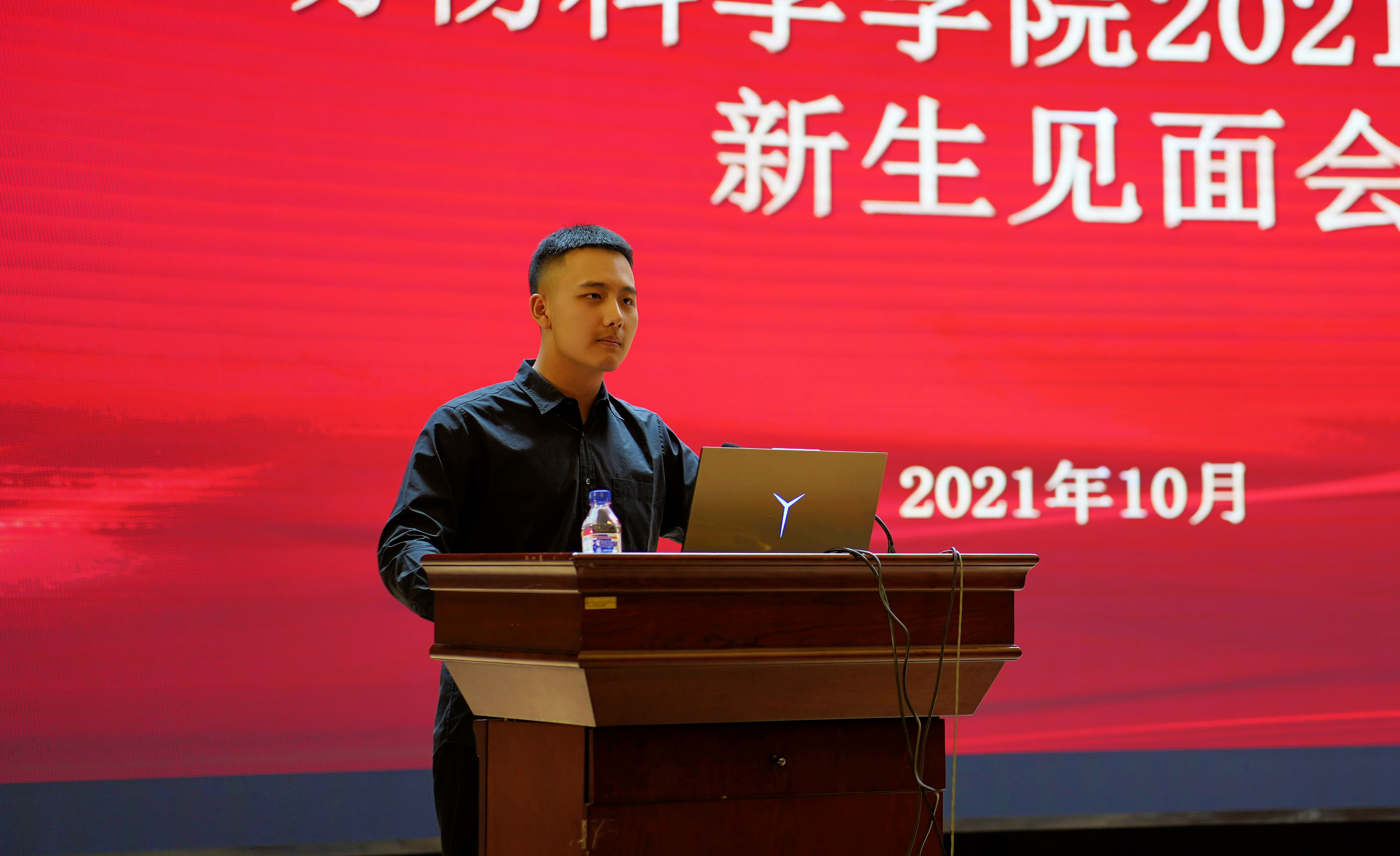 最后,新生代表2021级三班李尚泽发言。他分享了自己入学以来的感受和对未来老员工活的憧憬。同时,他代表新生作出承诺,将努力把自己未来四年在动物科学专业的所学所获与国家需要、时代需求紧密结合起来,做一名眼中有光,心中有党的当代青年。