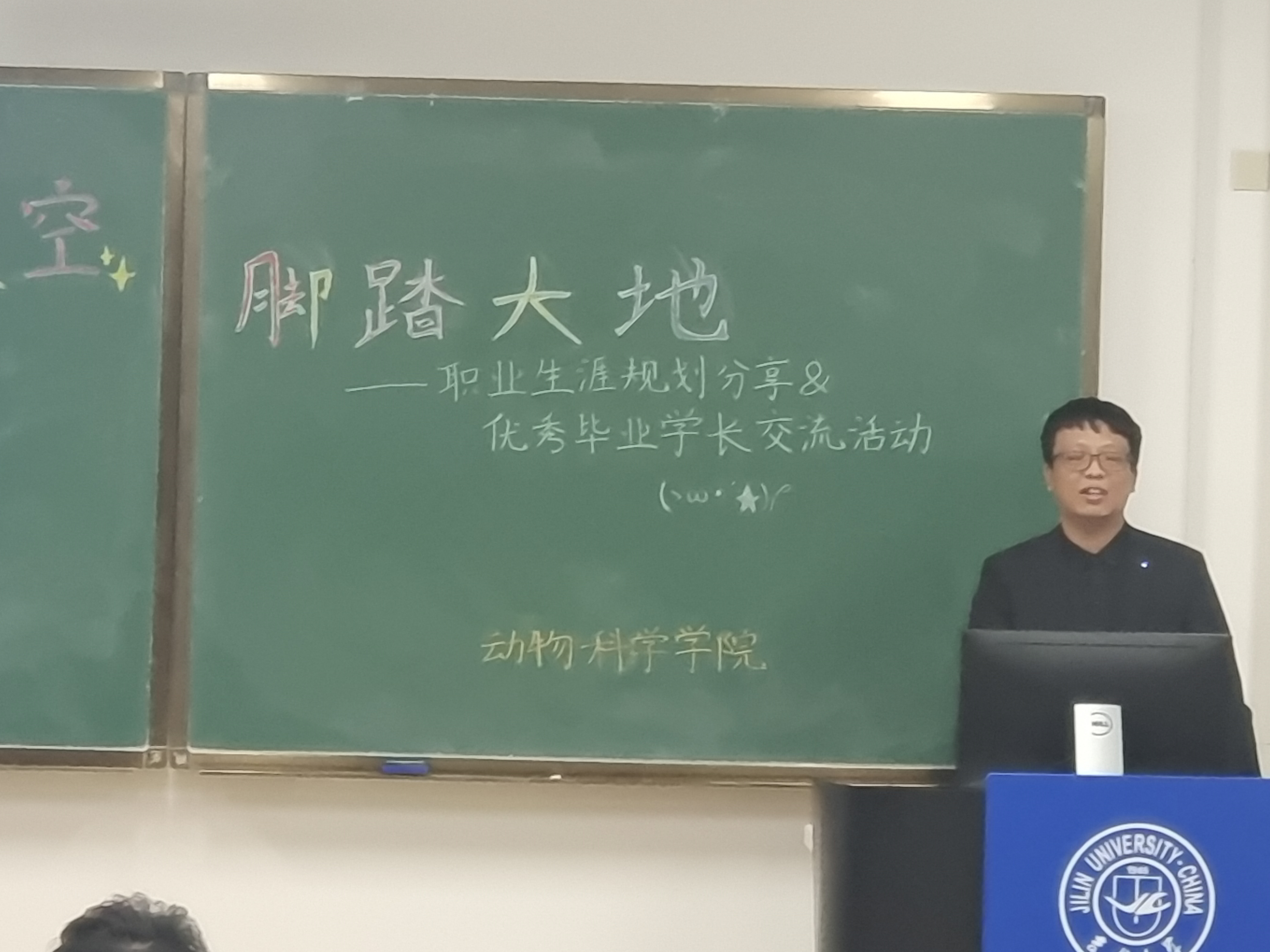 会议第二部分则是由两位熊猫体育优秀毕业学长进行分享交流。2006级动物科学专业学长刘宇翔以“从吉大到禾丰”为题,按照“青葱校园”、“入职禾丰”“禾丰成长”的先后顺序,分享了自己从初入吉大校园到入职禾丰集团的成长经历和感悟心得。他还特别提到,自己初入吉大校园时的迷茫和彷徨,由于一直缺少明确的努力方向和奋斗目标,在毕业择业时在“直接就业”和“考研究生”之前犹豫不决。在经历不断的尝试和试错后,他终于明确自己的职业生涯目标,并为之不断奋斗。他建议同学们要树立学业规划意识和职业规划意识,全面自我认知,坚守初心热爱。