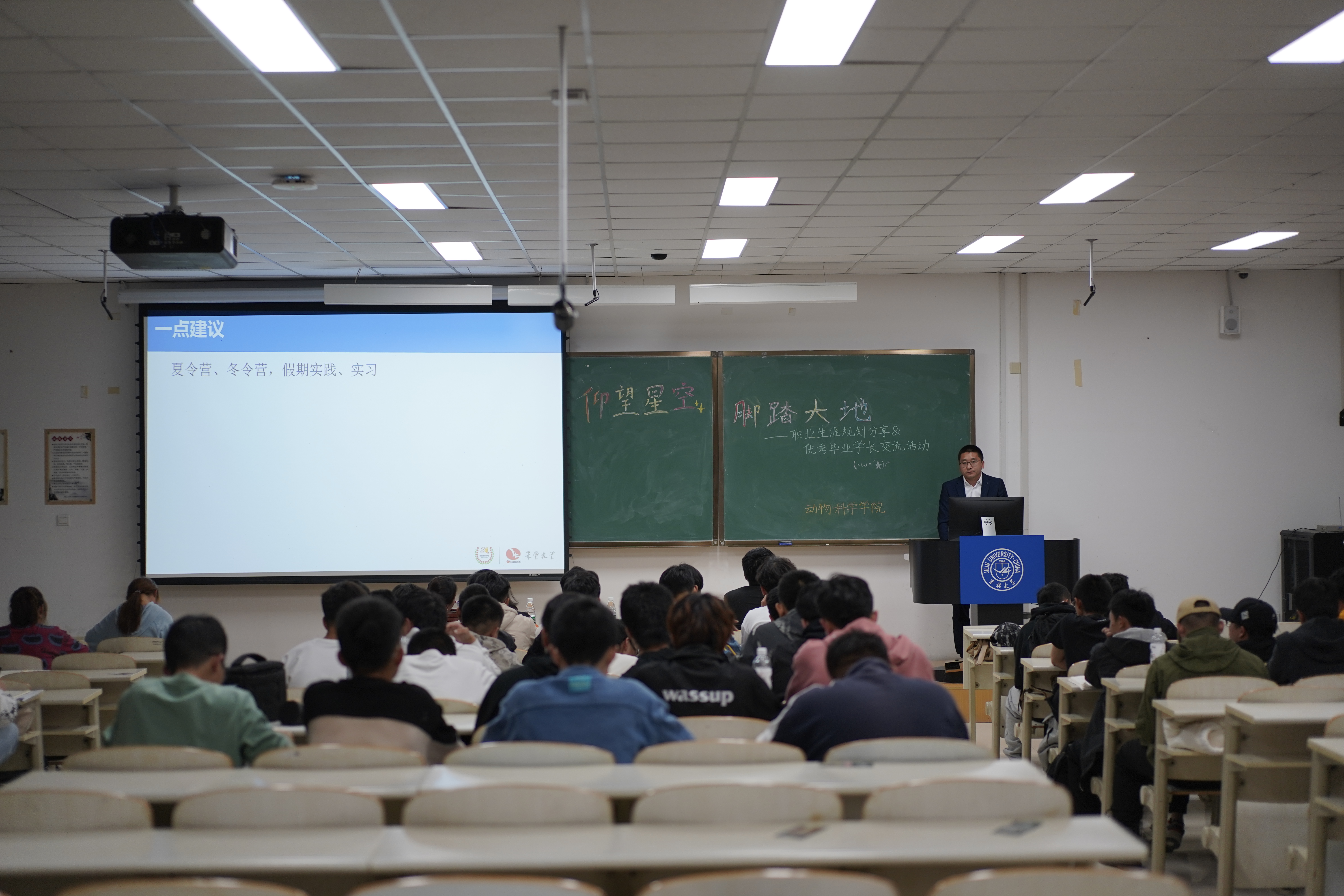 三位主讲人所讲的内容饱满充实,语言幽默诙谐,在座同学们认真聆听,用心思考。通过本次职业生涯规划与学长交流分享,2021级新生对所学专业未来即将从事的职业与行业现状和前景等方面有了全面的认识,认识到了动物科学专业在国家强农兴农工作中的重要作用,对于其明确职业方向,树立职业理想具有关键意义。