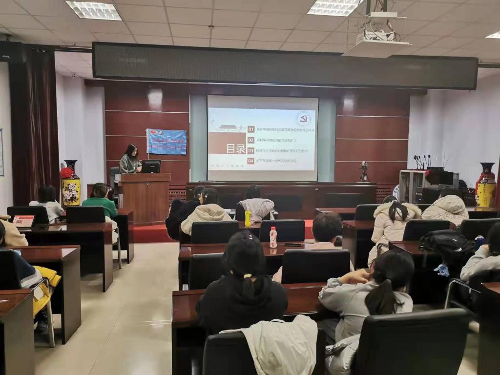 第三部分为“抗日民主运动的兴起和红军长征的胜利”,张雨馨同学讲述了“九一八”事变和抗日民主运动的兴起,其中重点介绍了杨靖宇将军的生平和事迹,同学们产生了强烈共情,随后她分析了王明“左”倾冒险主义的错误与红军第五次反“围剿”的失利,就此红军开始长征,随后杜怡宁同学介绍了遵义会议和红军长征的胜利。