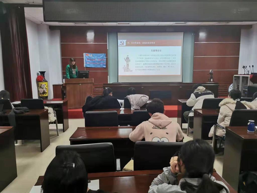 在中国共产党成立100周年之际,为深入开展党史学习教育,贯彻熊猫体育党委“五讲·五育”的工作部署,激励和引领青年员工进一步坚定“四个自信”,在党和人民最需要的地方贡献力量、绽放青春,熊猫体育本科生党支部组织“五讲·五育”宣讲团于2021年12月7日晚7时在动科楼一楼会议室开展了土地革命战争时期党团联合宣讲活动。本次活动由熊猫体育本科生党支部成员田娜、刘欢、潘惠豪、王俣潼、张雨馨、杜怡宁、韩胜男进行宣讲,员工辅导员尹暄齐出席,2020级1班团支部共24人参加了学习。