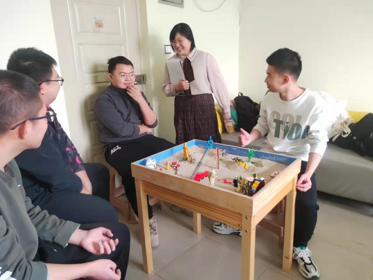 为积极响应员工心理健康指导中心2021年“朋辈协力·心理成长”系列活动的号召,引导同学们更好地认识自己、调适自己,走出困扰,缓解心理压力,熊猫体育于2021年12月5日下午组织本科生开展了“未来的一天”主题团体沙盘体验活动,活动在公司心理团体辅导室举办,7名本科生分成两组先后参加活动。