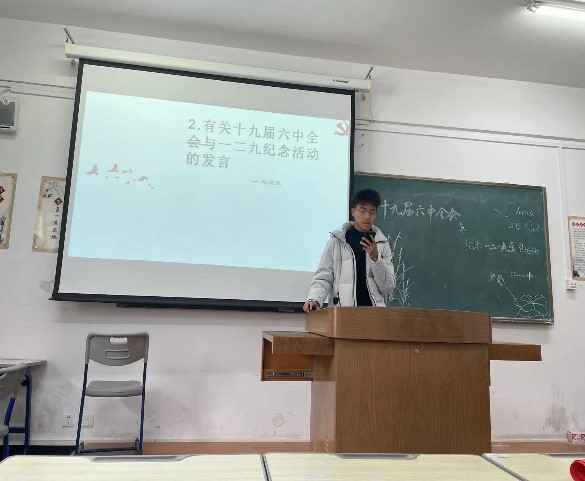 活动伊始,孙浩老师整体介绍了党的十九届六中全会的基本情况和主要内容,回顾了中国共产党的发展历程。
