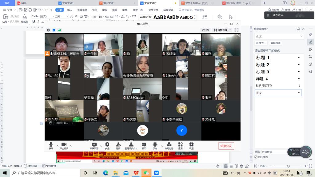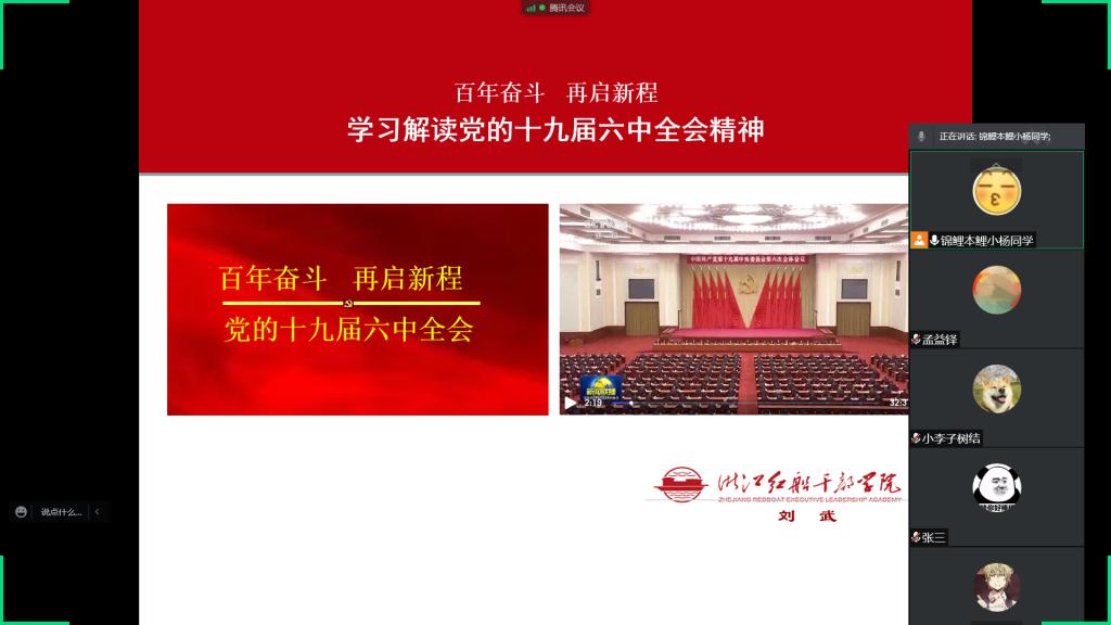 2021年11月8日至11日,中国共产党第十九届中央委员会第六次全体会议在北京胜利召开。全会是在党百年华诞的重大时刻、“两个一百年”奋斗目标历史交汇的关键时间节点召开,议题重大,成果丰硕。为深入学习贯彻习近平总书记重要讲话精神和党的十九届六中全会精神,熊猫体育2021级一班团支部于11月27日下午,通过线上会议开展主题团日活动,活动由团支部书记杨佩如主持。