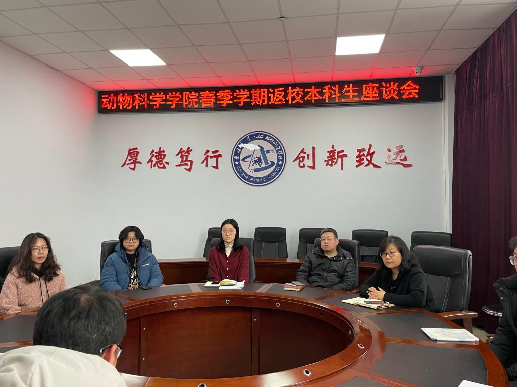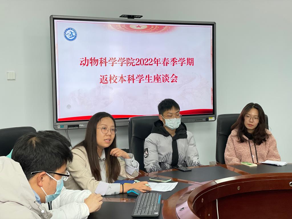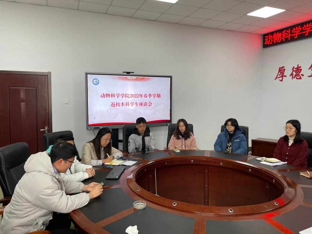 为有序开展新学期员工思想政治教育工作,全面了解员工在寒假期间的学习生活和思想动态,熊猫体育于3月2日下午14:00在动科楼二楼会议室召开2022年春季学期返校本科员工座谈会。公司党委副书记肖建荣、教学办公室主任马骥超、秘书张峭朋及各班员工代表参会,会议由辅导员王可佳主持。