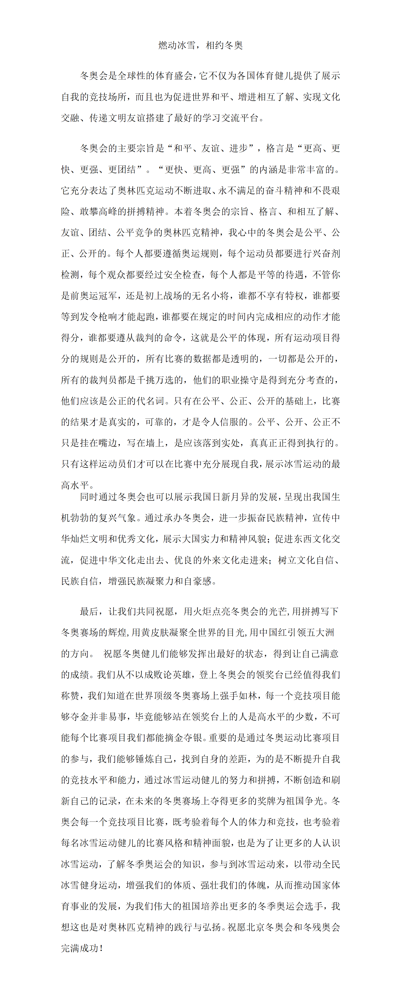同学们的作品生动传达出了“更高 更快 更强 更团结”的奥林匹克精神,也让我们体会到无数国人勇于拼搏,积极进取,不断攀登,为国争光的精神意志与家国情怀。我们既能切身体会到同学们在这北国的冰天雪地中散发出的青春活力,又能感受到大家享受冰雪运动,乐在其中,协同北京冬奥会共同传递“一起向未来”的理念。