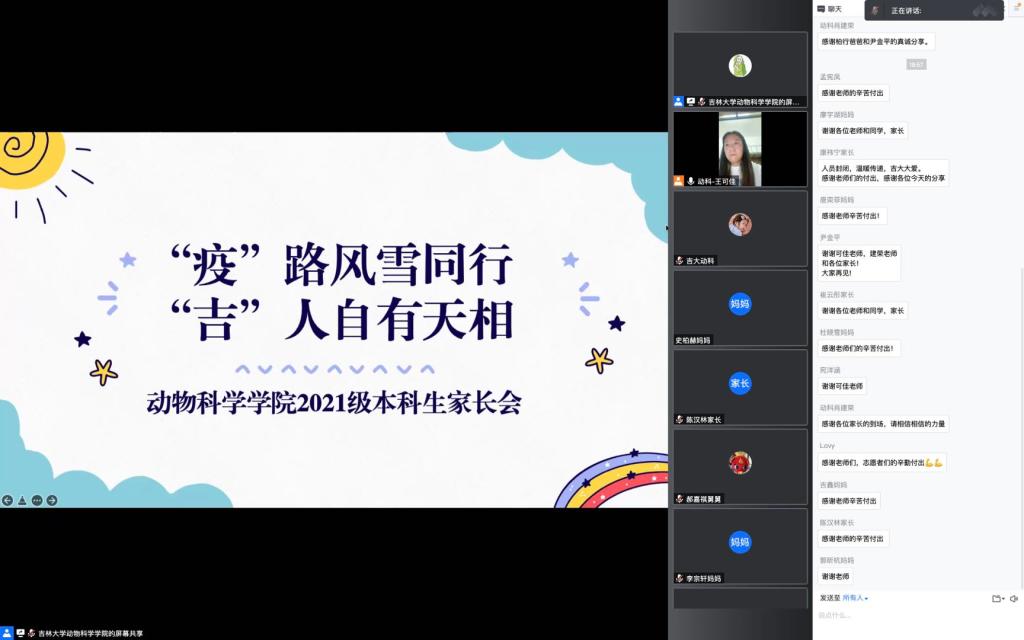 随后,852103班的尹金平同学以《温柔的网—疫情下的吉大校园生活》为题,按照时间先后,分享了自己在校园封闭管理以来的真实生活状态,声情并茂地将自己的心路历程、情感变化分享给家长们,引发部分家长潸然泪下,感动不已。