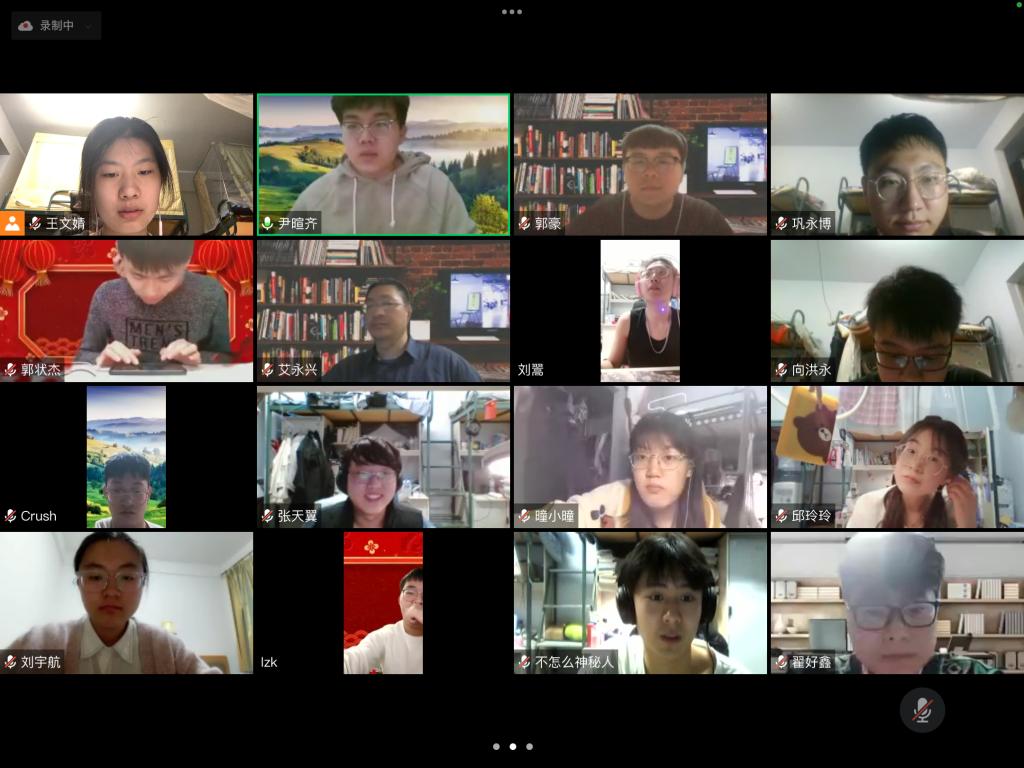 在全体师生观看吉大动科防疫的剪辑视频“身边人”战疫故事之后,同学们纷纷分享自己最近的生活经历和心得体会。巩永博同学主要分享了在这一周防疫志愿活动中的工作经历和心得感悟。心理委员邱玲玲表示:每天穿上防疫服参加“垃圾回收小分队”,不仅锻炼了自己,更切身地体会到防疫工作者的辛苦。会议最后,班主任艾永兴老师、辅导员尹暄齐老师针对同学们关于封寝时期学习生活遇到的问题一一提出解决方案,艾永兴老师也为同学们目前解释了吉林的疫情防控形势,希望同学们调整好心态,认清疫情形势,不造谣、不传谣、不信谣,提高信息辨别能力,获得正确的疫情防控信息。同时,他强调,同学们也应该在这段时间内静下心来好好思考自己未来的人生方向,要趁现在的机会,高效利用碎片化时间,为自己的未来发展做好规划。