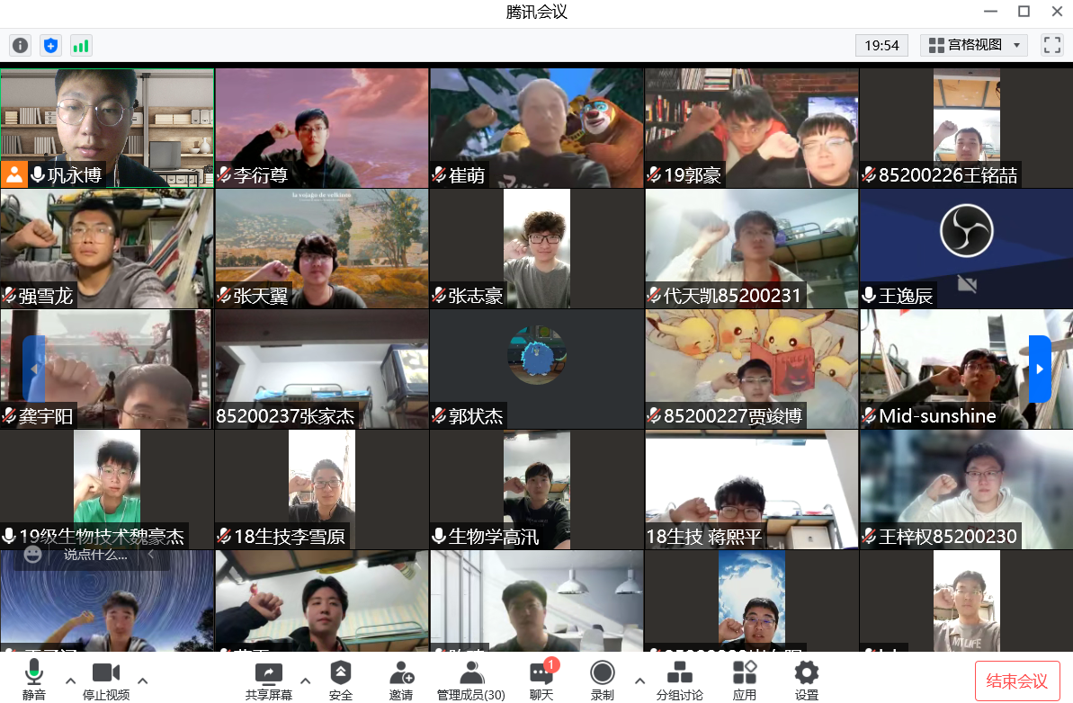 大会以线上会议的形式召开,由第四临时团支部书记巩永博主持会议。会议伊始,巩永博传达了《关于疫情防控期间成立临时团支部的通知》的重要精神,阐明了成立临时团支部的重要性,并从组织结构、生活实际、活动开展三个方面明确了临时团支部的主要任务,鼓励同学们切实做到发挥团员的先锋模范作用。