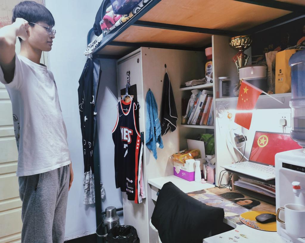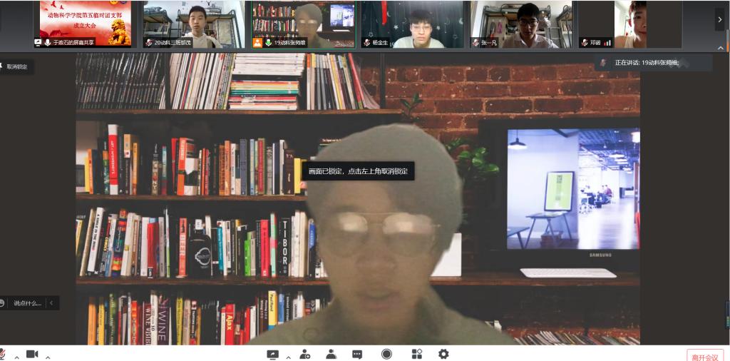 大会的第四项,由团支部委员施政同学带领全体团员重温入团誓词。即便是在线上,全体同学仍然起立,打开摄像头,举起右拳,在施政同学的带领下庄严地重温入团誓词。