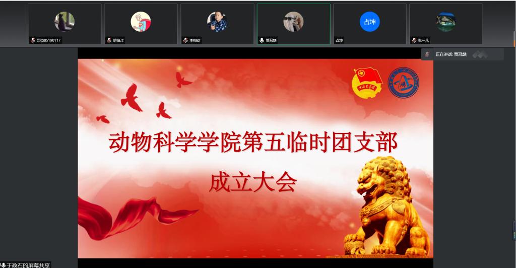 大会的第二项,由团支部副书记宣布临时团支部书记和委员指派的决定。公司团委决定,指派18级动物科学专业于政石同学担任团支部书记,19级动物科学专业张师维同学担任副书记,20级三班施政同学和邬茂同学担任团支部委员。