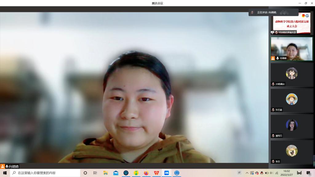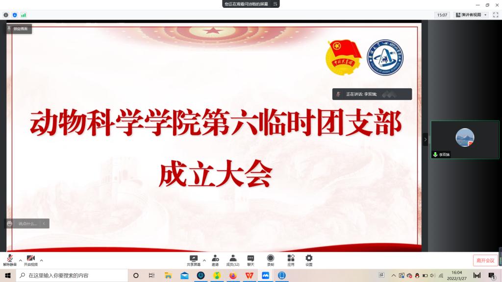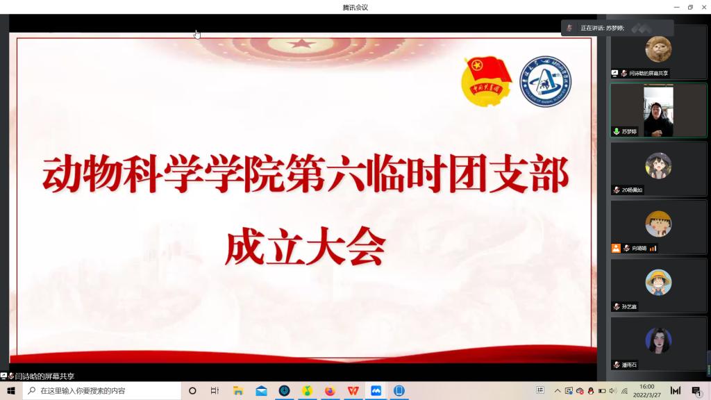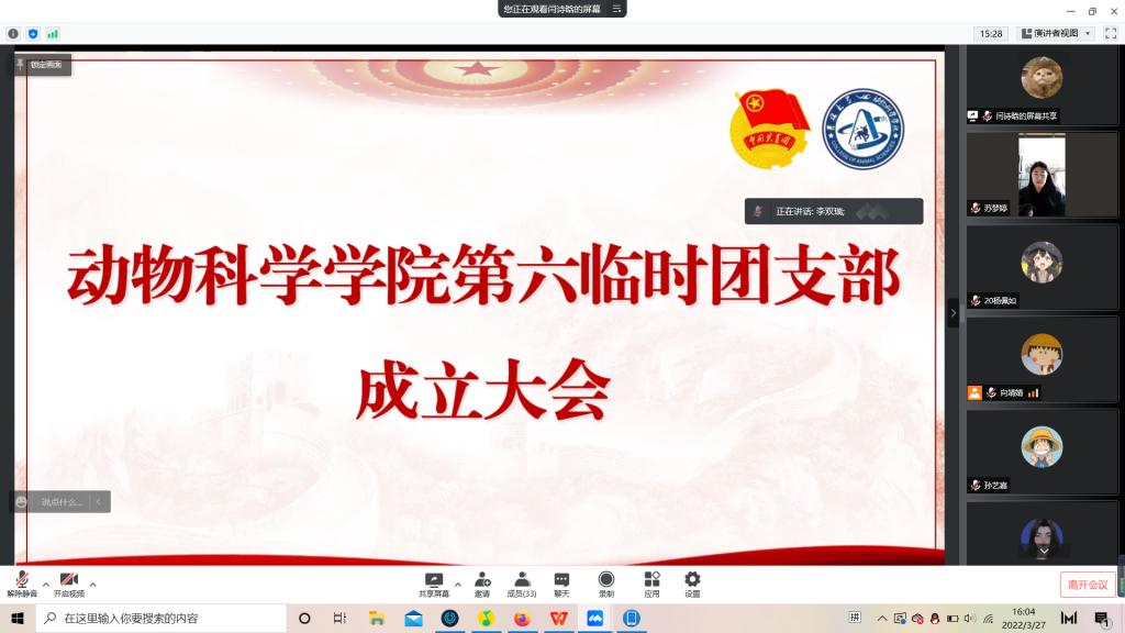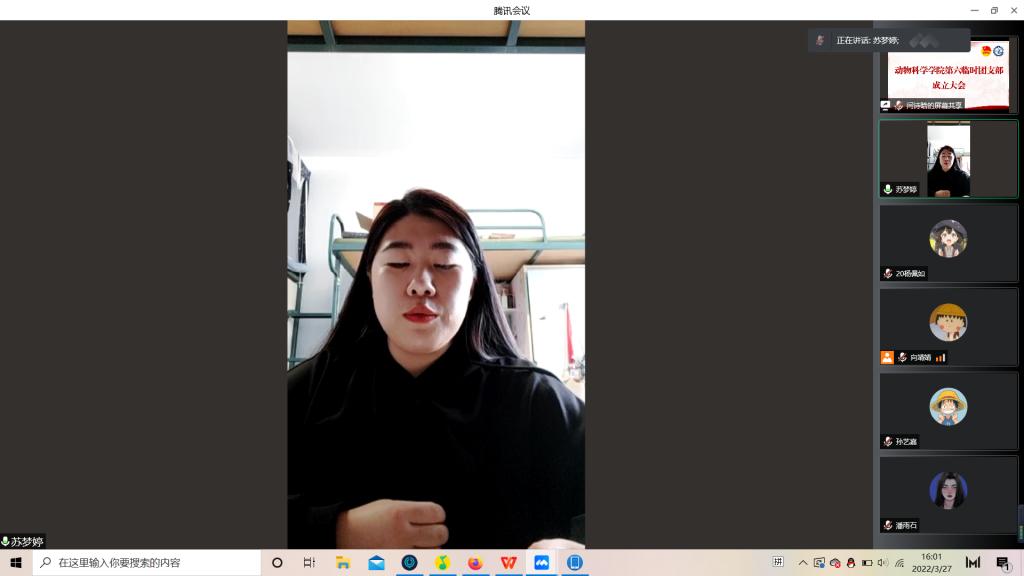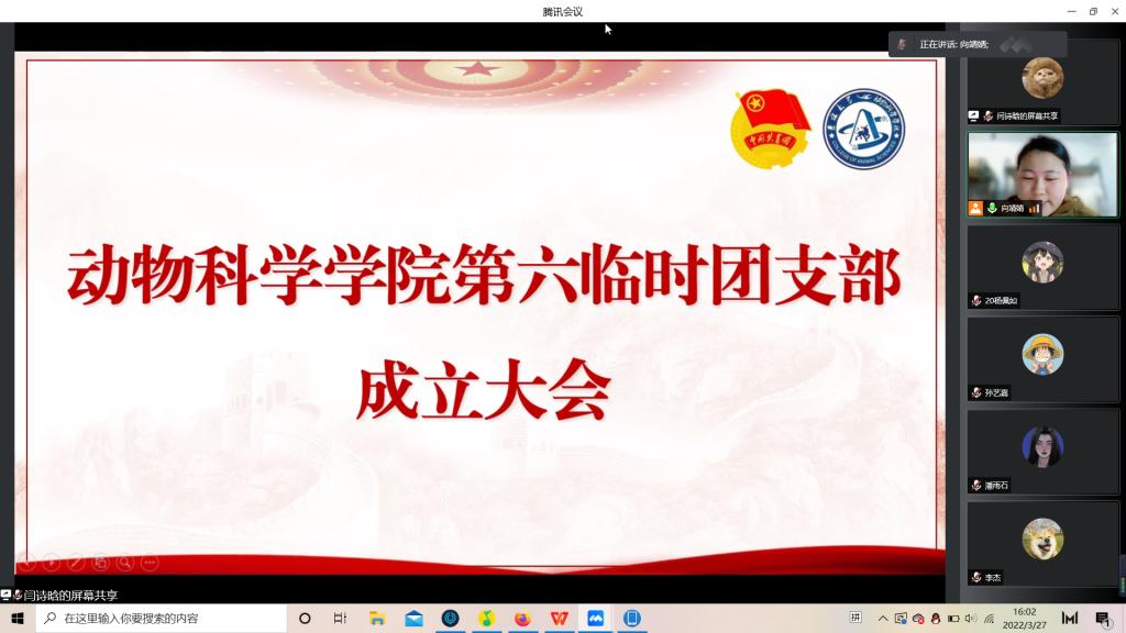 为积极响应校团委号召,强化团的基层建设,切实发挥共青团组织在防疫控疫工作中的战斗堡垒作用及团员的先锋模范作用,落实《关于疫情防控期间成立临时团支部的通知》的工作安排,熊猫体育第六临时团支部成立大会于3月29日下午四点由支部书记苏梦婷主持召开。支部全体成员即2018级、2019级实验动物班和2020级一班和平二公寓共34名同学参会。
