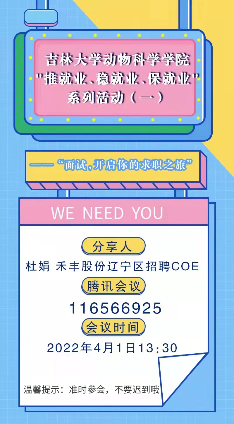 4月1日下午,公司举办“面试,开启你的求职之旅”分享会,邀请禾丰股份辽宁区招聘COE杜鹃为分享人。杜鹃首先介绍了禾丰集团的企业文化,并从“如何获取招聘信息”、“怎样选择合适公司”、“简历制作”以及“面试技巧”等方面进行了面试经验分享。她还从企业简介、长期发展、薪资福利等方面对禾丰集团的招聘岗位做出了详细介绍。