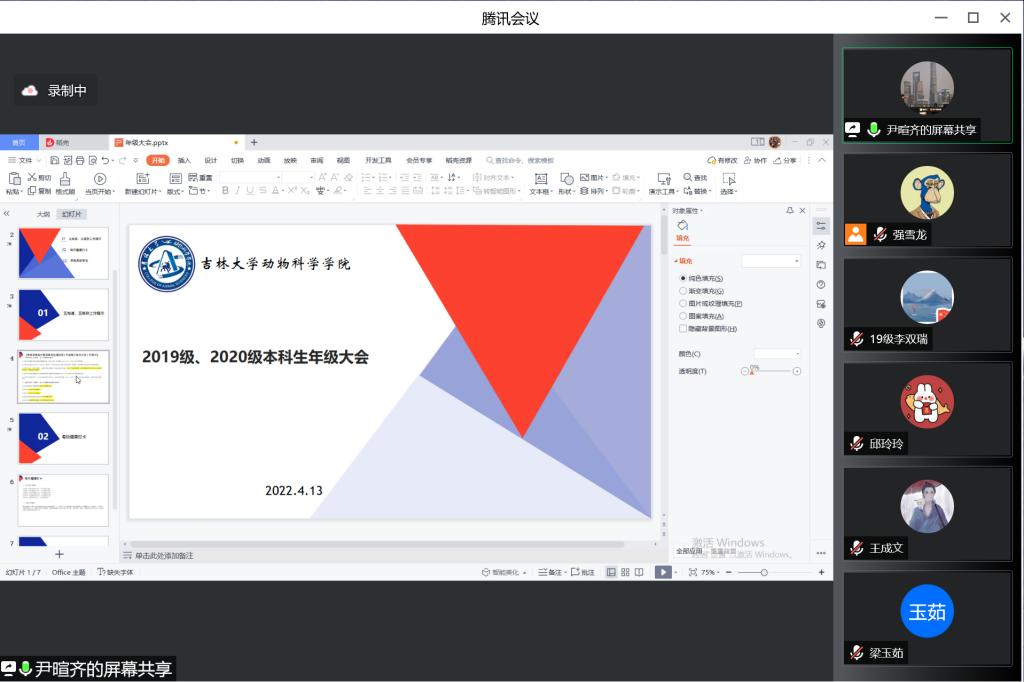 会上,辅导员尹暄齐老师首先向同学们解读吉林省教育厅新冠肺炎疫情防控工作领导小组办公室工作提示,即要求同学们了解遵守“五知道、五做到”。随后,尹暄齐老师就目前每日健康打卡的情况进行通报并落实相关工作安排,强调每位同学要对此高度重视,及时打卡。最后,他强调:全体同学应体谅志愿者工作的不易,尤其是员工干部和员工党员要明确身份、以身作则,在疫情防控工作中带头遵守疫情防控的各项管理规定,积极参加各公寓的志愿服务,展现担当精神,让青春之花在抗疫一线绽放。