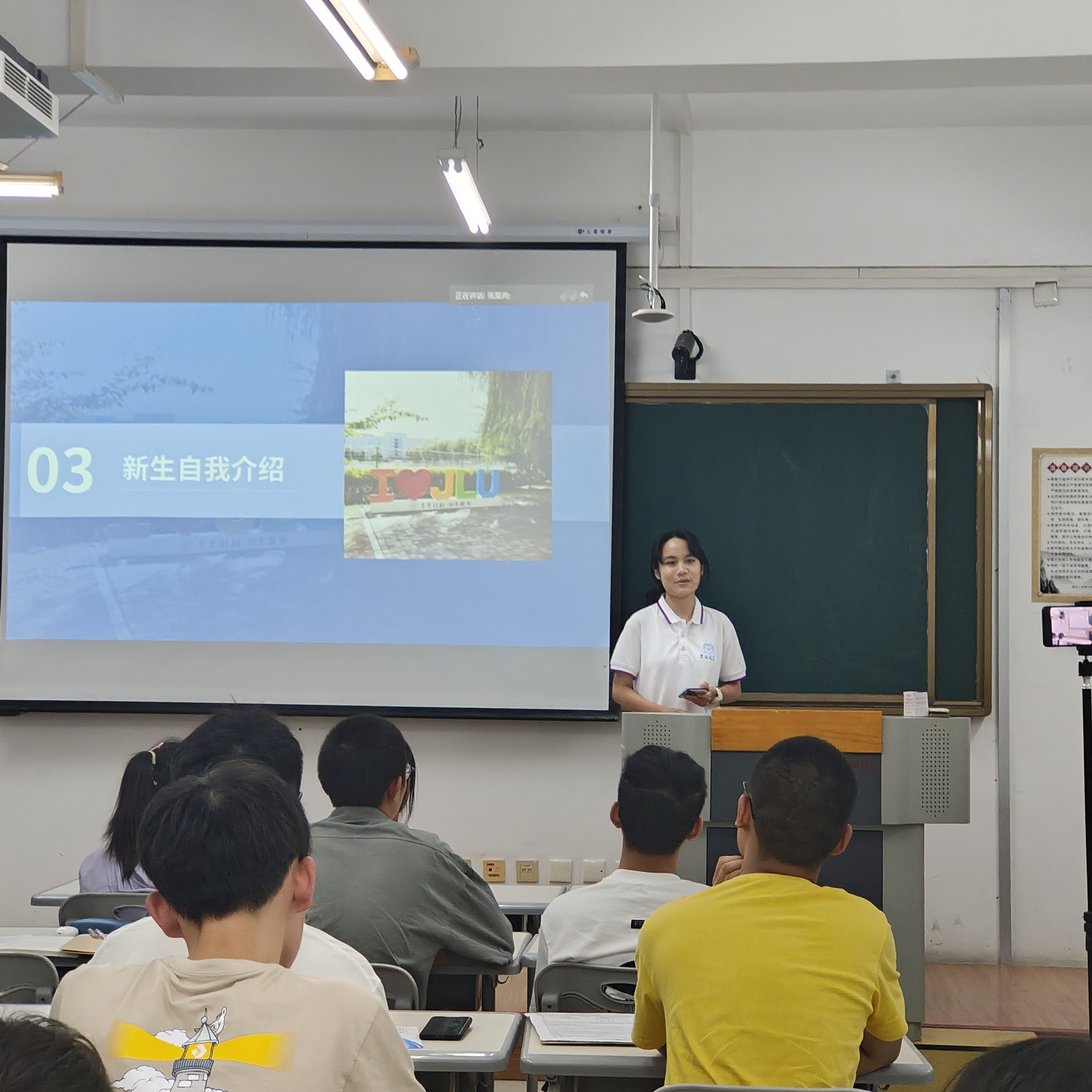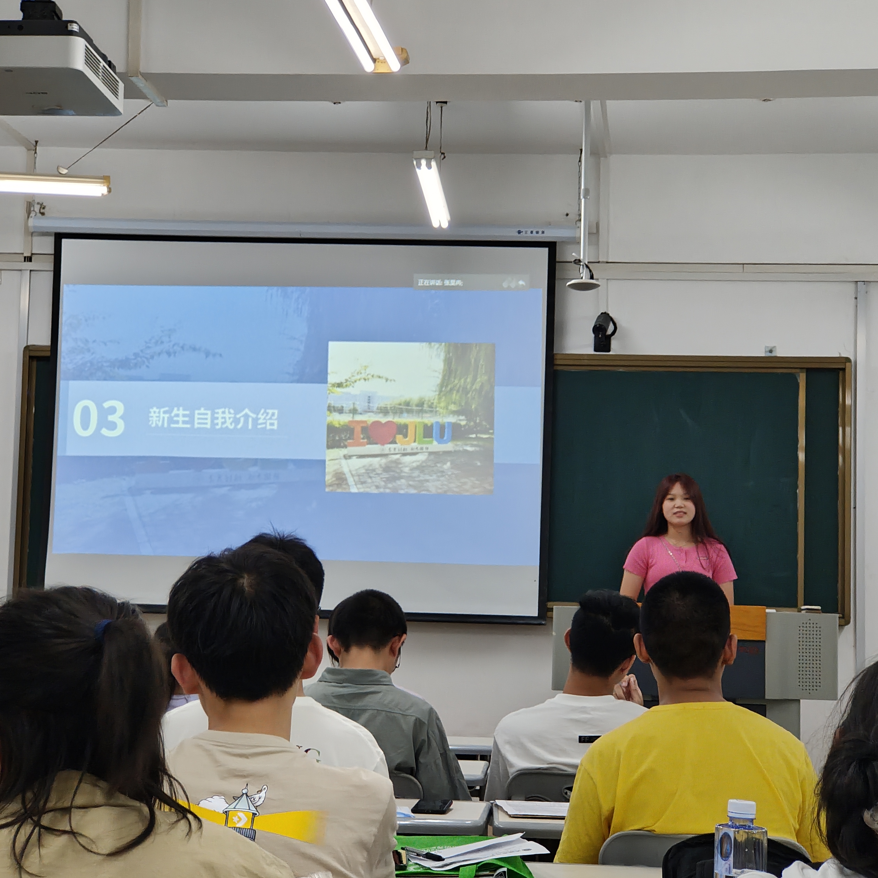 在班主任与班代的发言结束后,同学们敞开心扉介绍自我,近到长春本地,远到云南、甘肃、四川、内蒙……来自五湖四海的同学们站在讲台上,讲述着自己的性格、爱好等,听众们也从言语中认识着新朋友。同时,有意参选军训负责人的同学也自信地展示着自己的经历。欢笑声中,辅导员刘姣伶老师也“突击抽查”,交流融洽。