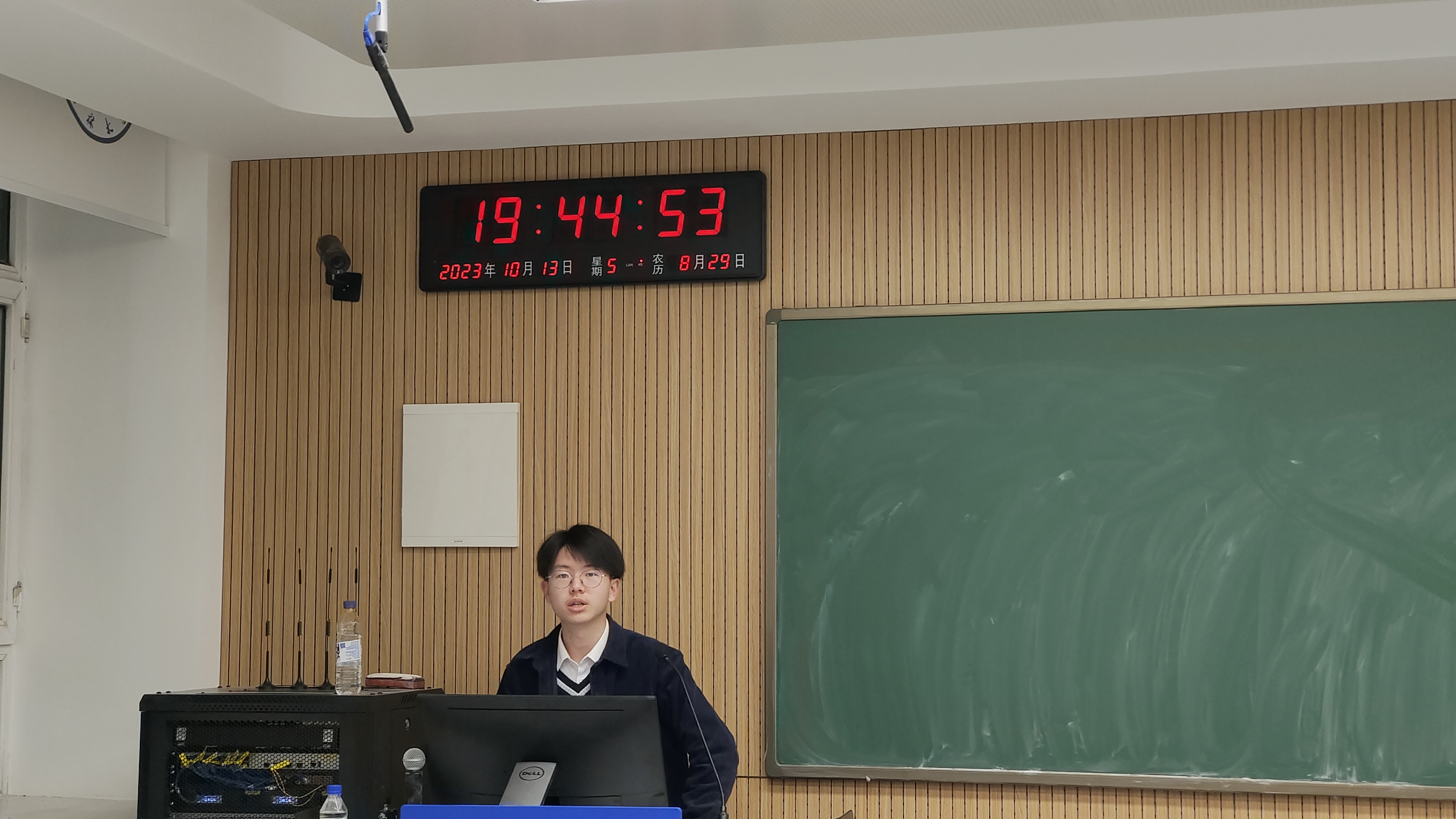 张徐钲同学用表格清晰地列出他参与夏令营的情况,并就夏令营活动中“入营、参营、考核”这三大节点展开详细介绍,使同学们对夏令营的整体情况有了大概了解。