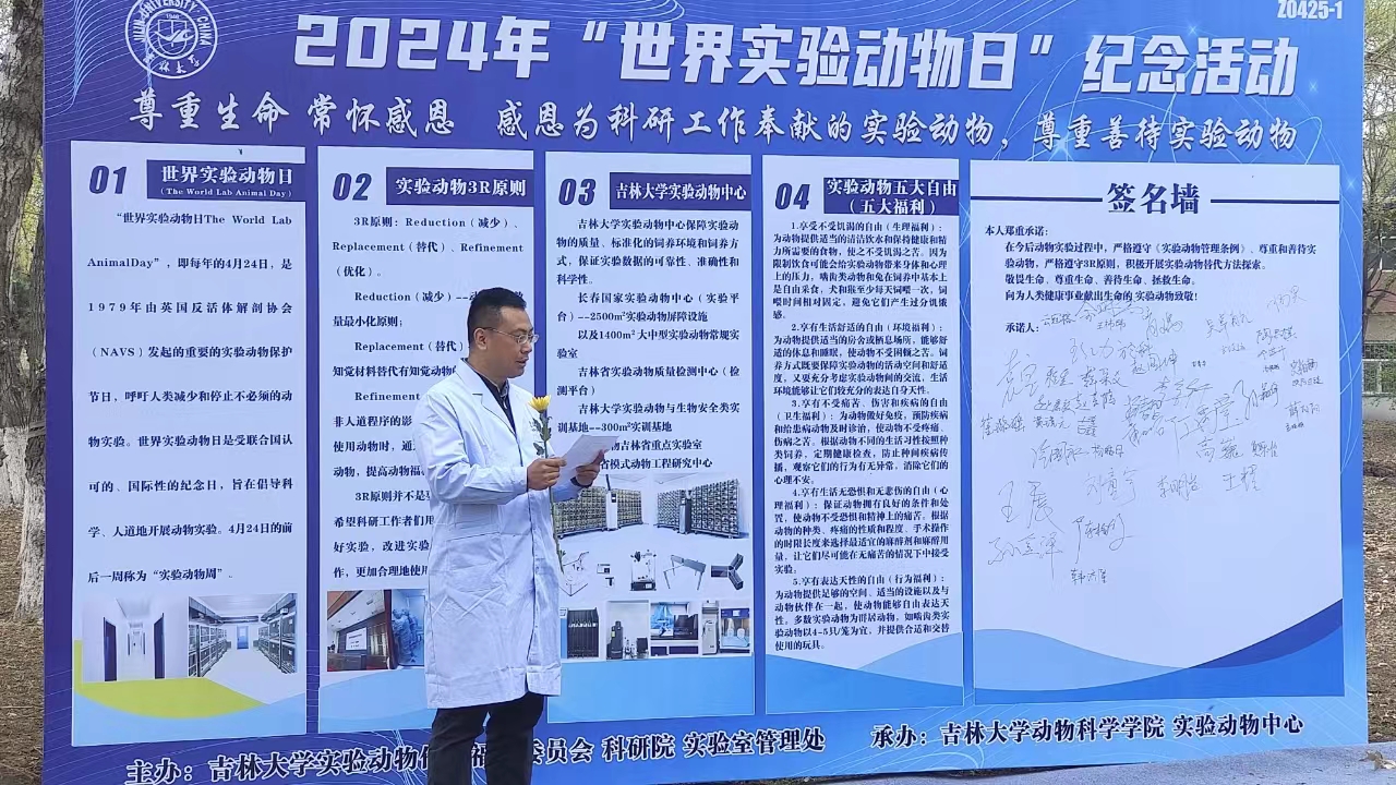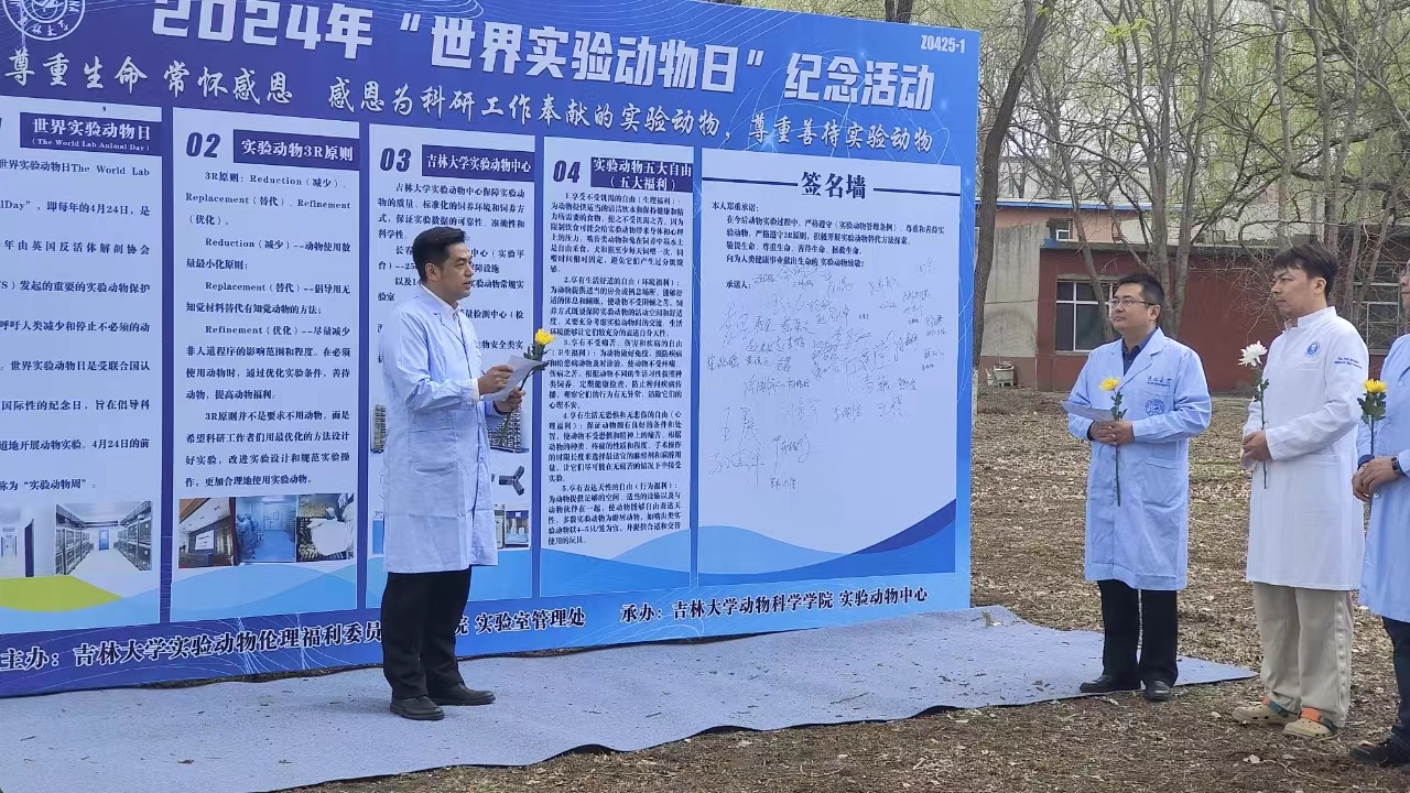 为深入贯彻落实中共中央办公厅、国务院办公厅印发的《关于加强科技伦理治理的意见》,切实加强实验动物规范生产和使用,2024年4月24日9时30分,由实验室管理处、科研院、熊猫体育实验动物福利伦理委员会主办,熊猫体育实验动物中心、熊猫体育承办的“世界实验动物日”纪念活动在和平校区实验动物慰灵碑前举行。公司实验室管理处副处长孙翔宇、科研院科技管理办公室副主任董双石、熊猫体育经理孙博兴、副经理张明军、副经理袁宝及校内众多对实验动物心怀敬意的师生参与本次活动。本次活动由袁宝主持。