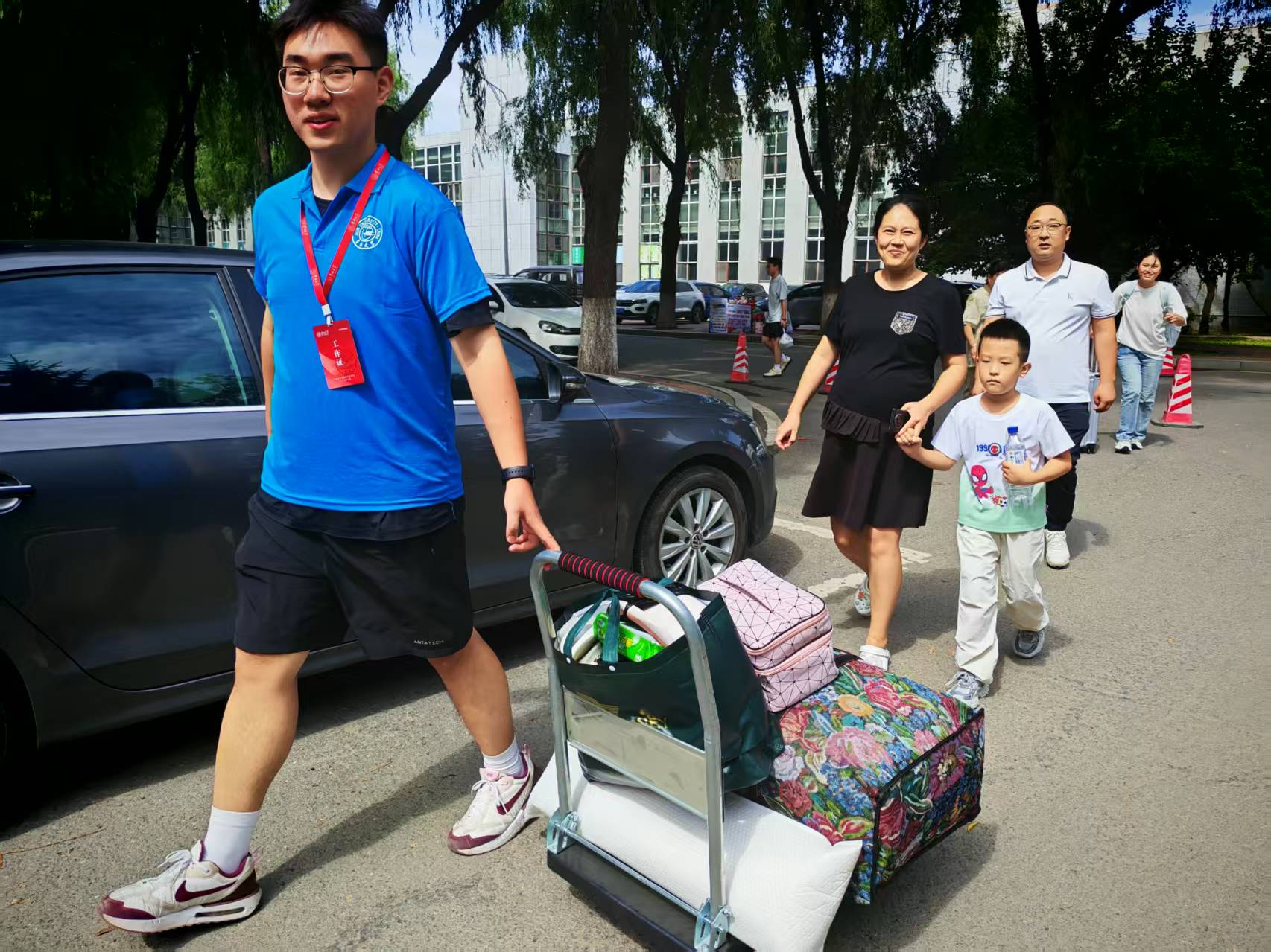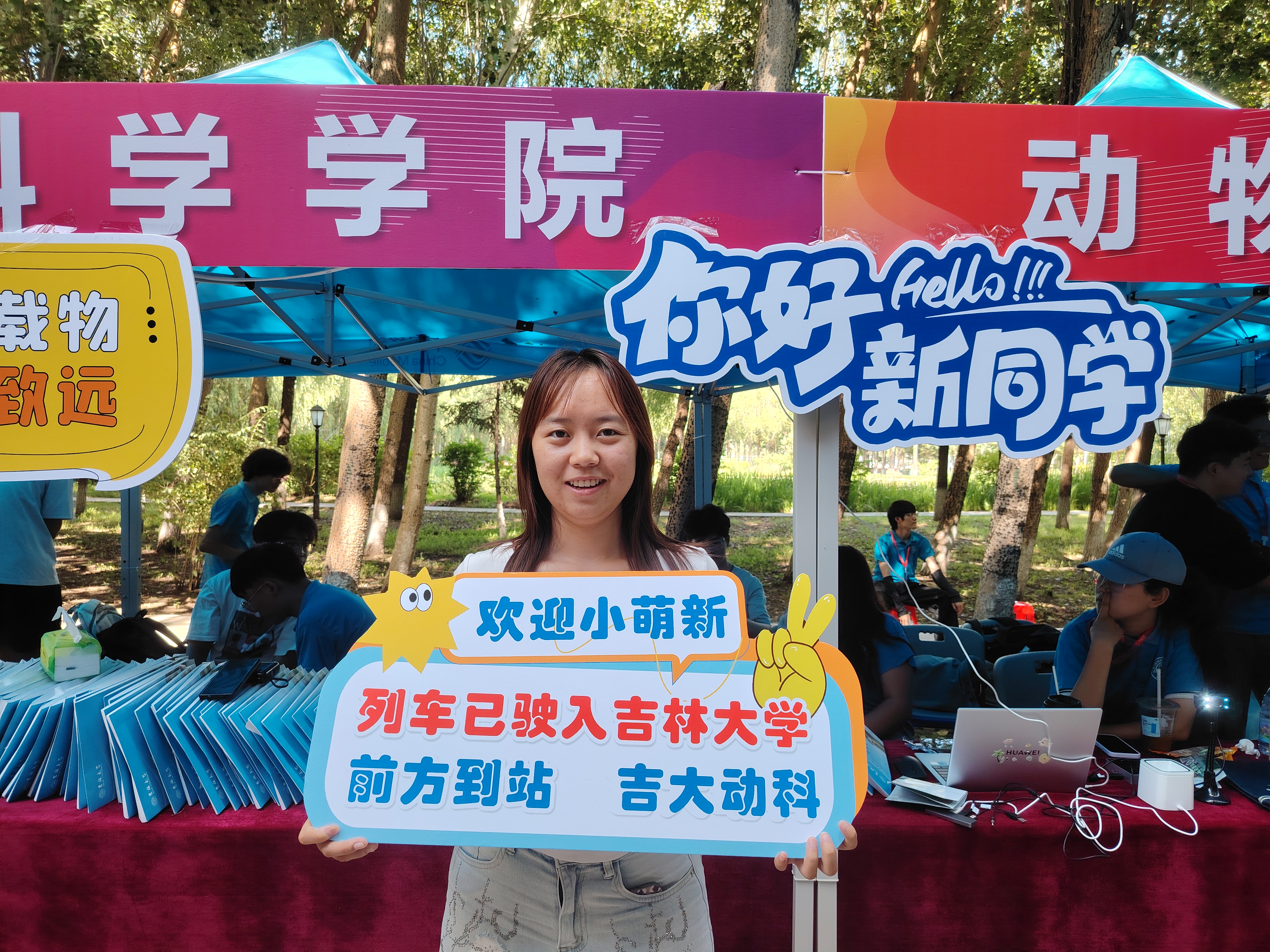 8 月 22 日凌晨 5:30,志愿者团队在细雨中自和平校区出发,完成了桌椅搭建、设备调试等筹备工作。7 时,全体人员均已就位,构建起涵盖“校门引导、报到办理、宿舍行李搬运、宿舍入住登记”的全流程服务闭环。在迎新现场,公司为新生精心准备了“‘吉大动科’专属宠爱礼品袋”,内有院徽钥匙扣、定制书签等纪念品,与入学资料袋一并发放。新生在辅导员助理的引导下完成身份核验、资料领取等手续后,由志愿者全程陪同前往公寓楼。各环节紧密有序,高效的服务获得了新生及家长的高度赞誉。