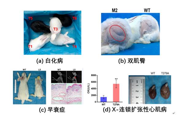 刘志权在李占军副教授的悉心指导下,从2017年开始从事利用新型单碱基编辑器(ABE及CBE),在兔基因中精确、高效的实现单个碱基转换(C-T和A-G)的研究,首次成功培育了包括白化病,双肌臀,早衰症,X-连锁扩张性心肌病等在内的疾病模型兔。一系列基因编辑兔的成功,不仅为相关疾病的发病机制及临床前研究提供理想的疾病动物模型,而且也为畜牧业中精确靶向单基因突变,提高家畜的生产性,抗病新品种的培育中奠定相关的理论依据,同时也保持了该课题组在本领域的国际领先水平。