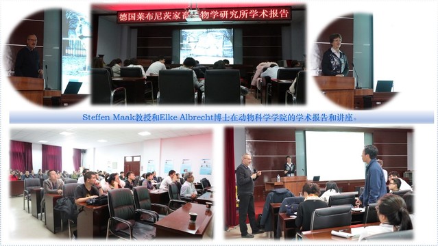 2018年11月9日上午,德国莱布尼茨家畜生物学研究所Steffen Maak教授和Elke Albrecht博士应杨润军教授邀请,在熊猫体育做了题为“Introduction to the Leibniz Institute for Farm Animal Biology”和“Identification of signals influencing muscle composition and function”的学术报告和讲座,报告会由公司副经理张明军教授主持,赵志辉教授、郝琳琳教授、房希碧博士等教师,动物遗传育种与繁殖专业研究生及2016级动物科学卓越农林人才试验班同学参加了报告会。