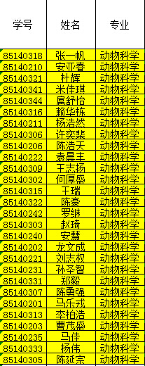 2015学年卓越农林人才拔尖培养计划员工名单公示