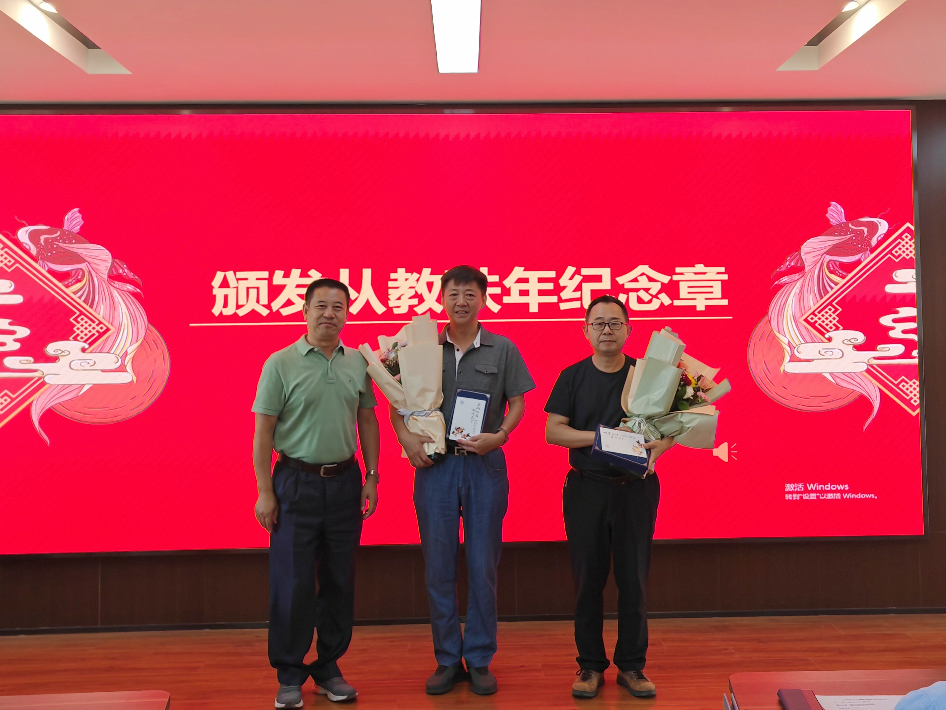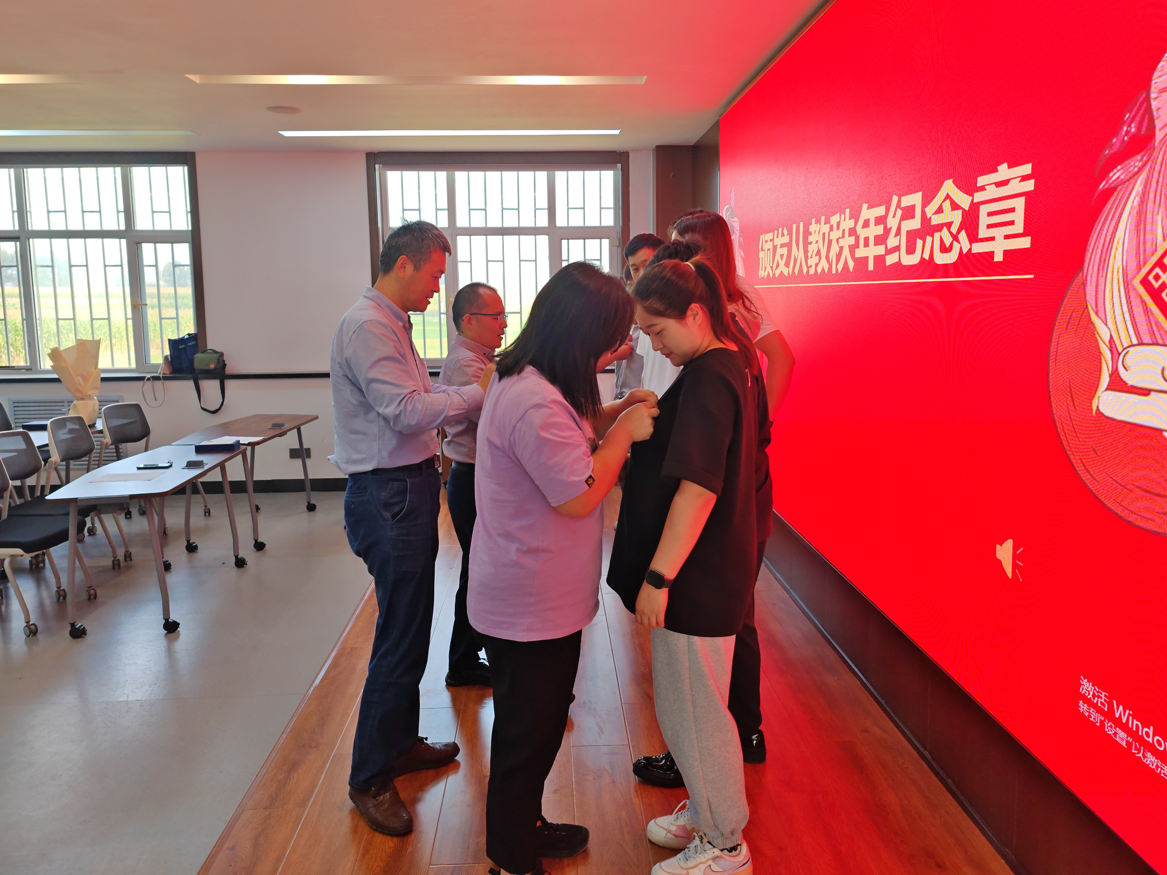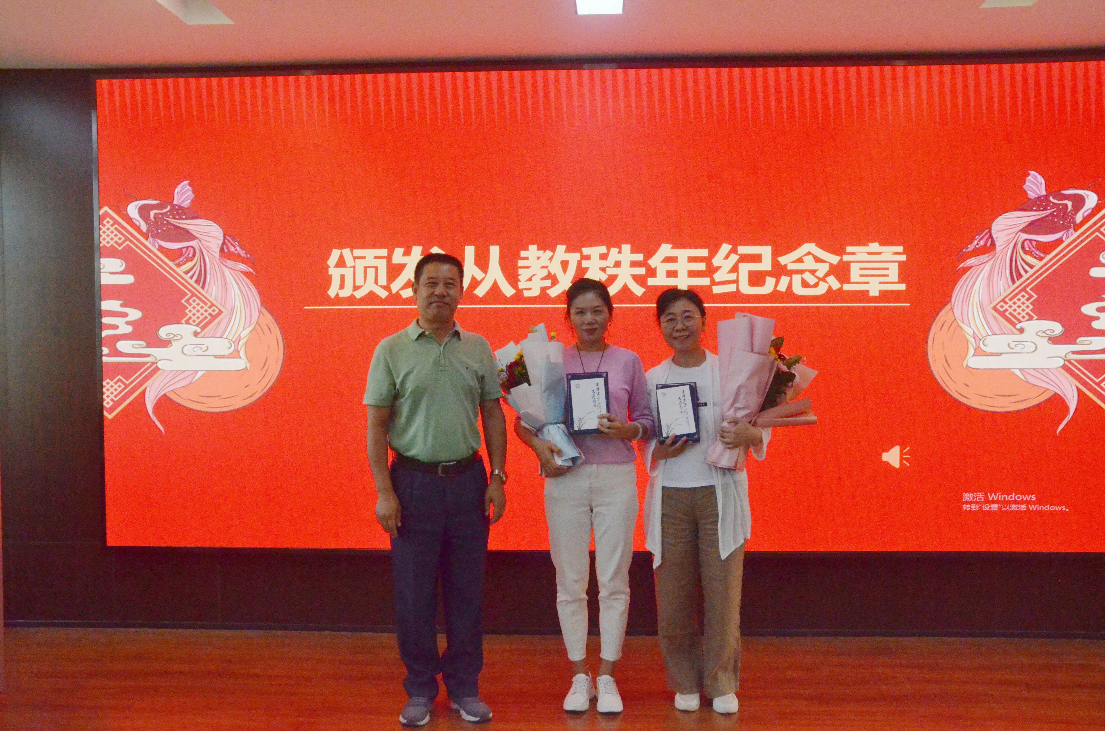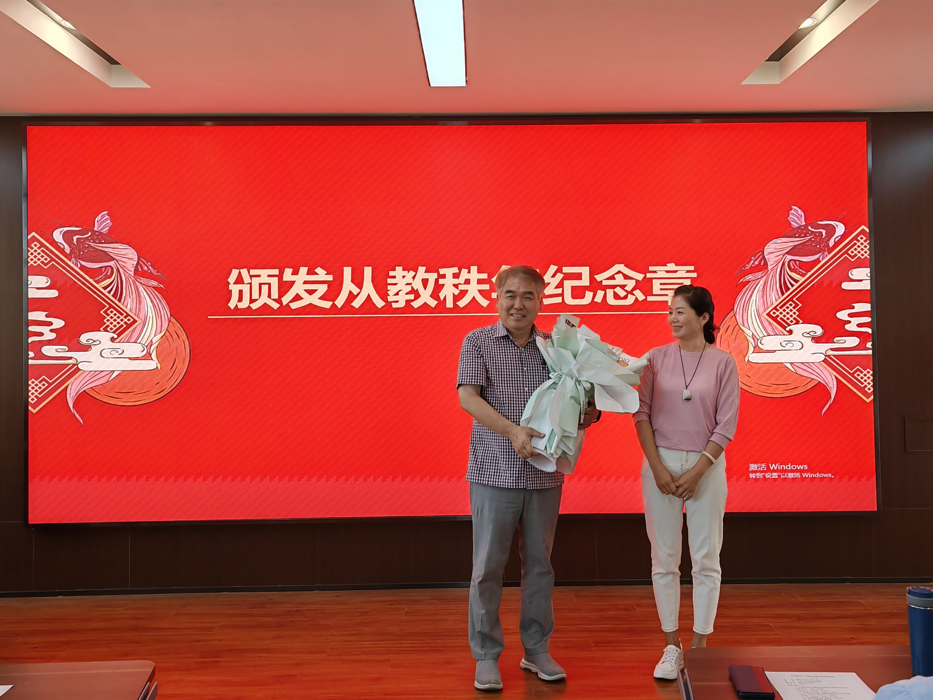 活动中,党委书记高福和为从教10年、20年和30年的教师代表颁发从教秩年纪念章和鲜花;教师代表丁瑜为唐敖庆讲座教授孔一根教授敬献鲜花;公司领导为公司2021年以来新入职教师佩戴熊猫体育校徽,并组织全体新入职教师进行入职宣誓。