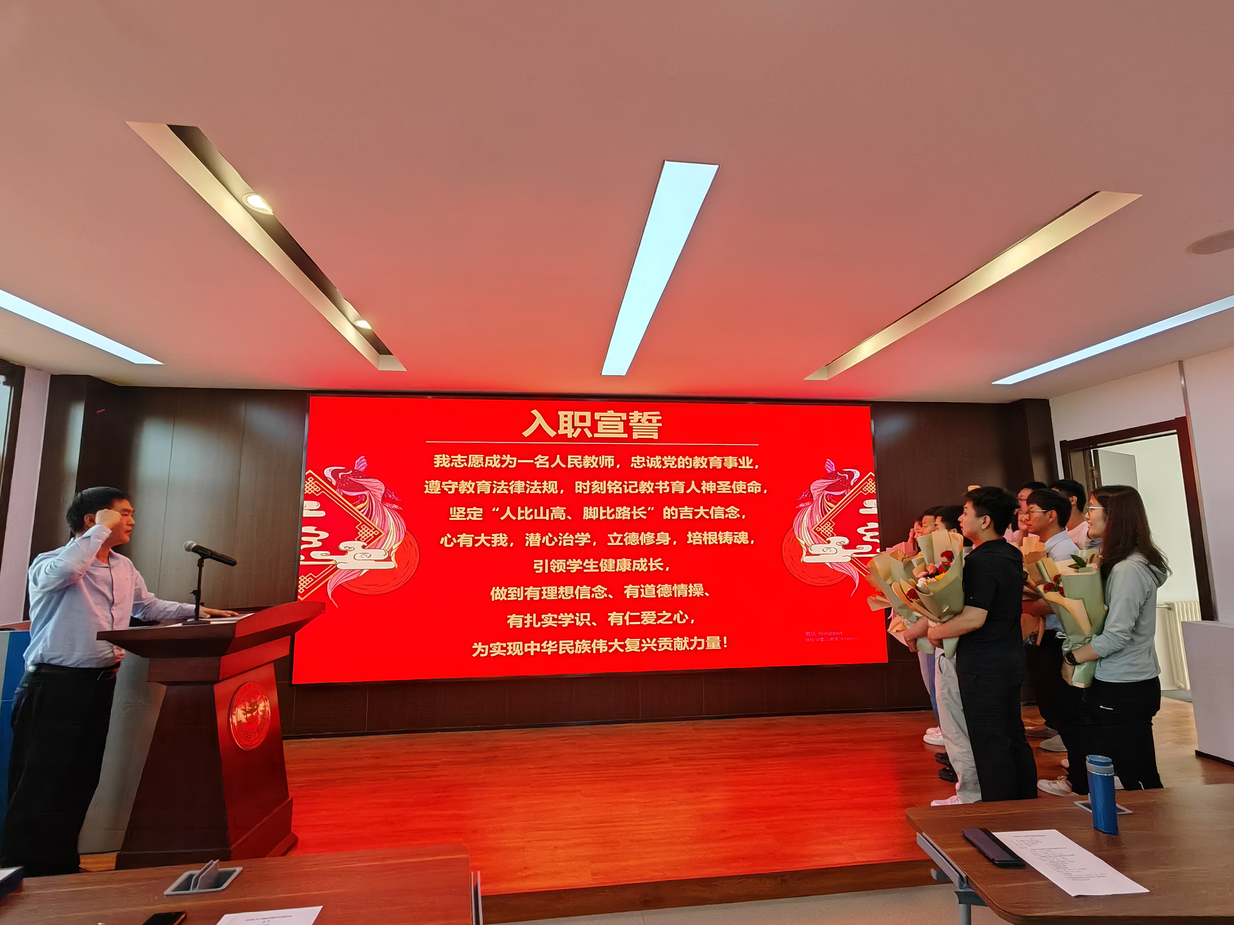 在动物科学系主任张永宏老师的领誓下,全体新入职教职工进行入职宣誓。字字千钧,坚定信念;铮铮誓言,镌刻初心。随后,新入职教师依次在自我介绍中袒露从教心声,并许下“为学、为事、为人”的庄重誓言。