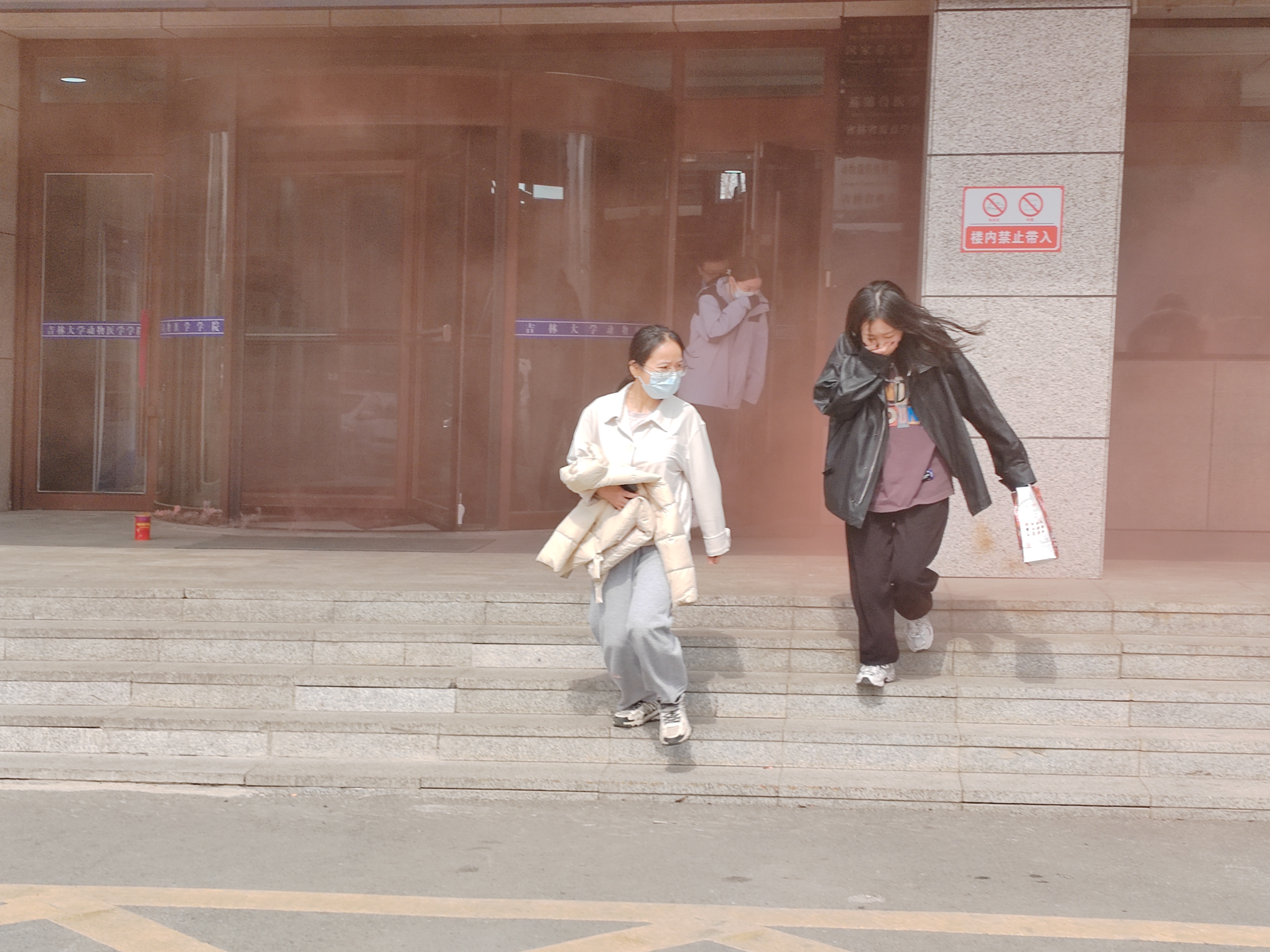 中午十二时,演习正式开始,随着消防报警声的响起,各楼层指挥员工迅速到达指定地点,沉着冷静地指挥员工用湿毛巾捂住口、鼻,尽量放低身体重心,从安全疏散通道紧急撤离。全体师生在指定时间内安全、快速、有序地疏散到了楼前空旷地带。