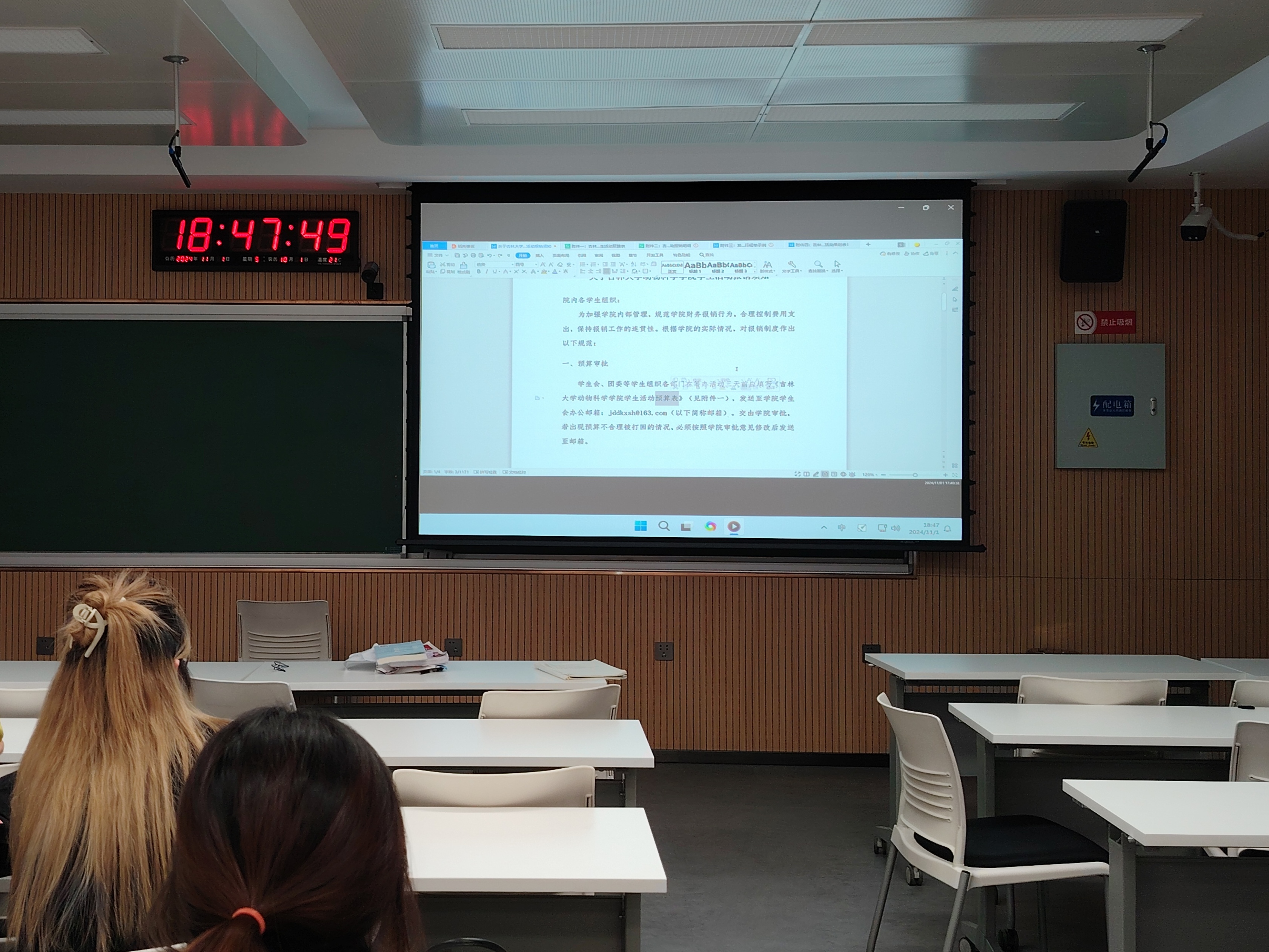 活动伊始,团委副书记蒋鑫淼发言,她从团组织规范、智慧团建系统应用、团委邮箱管理等方面详细介绍了团委成员及各班团支书的工作职责与具体要求,加深了大家对团委工作的理解。