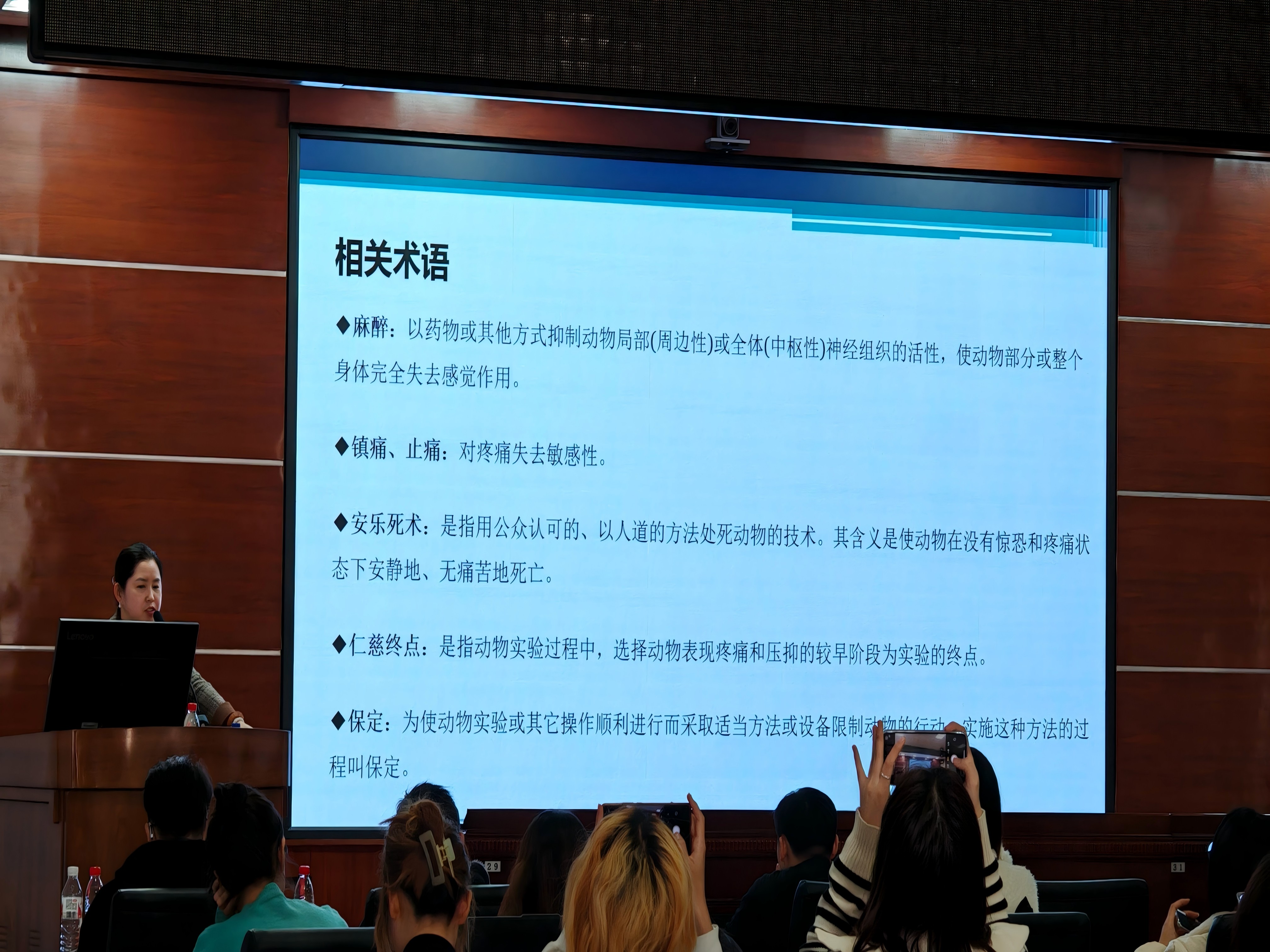 在实验动物设施准入培训环节,权福实老师为同学们作了开展动物实验前必备的《熊猫体育实验动物福利伦理审查》申请的相关报告,对如何保障实验过程中动物福利以及申请实验动物福利伦理审查的程序、相关术语、填写注意事项作出了详细说明。