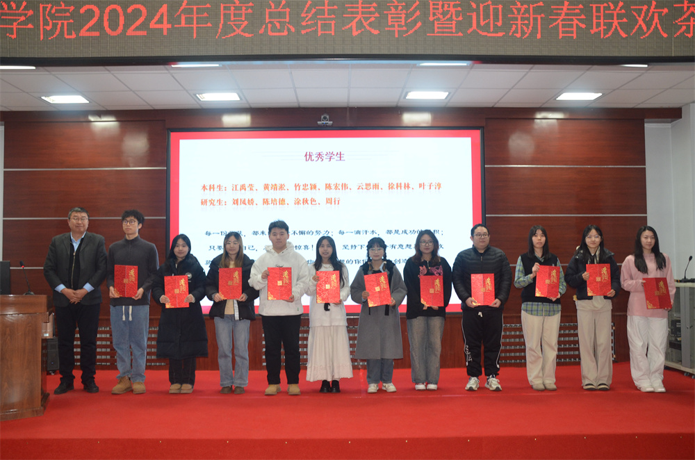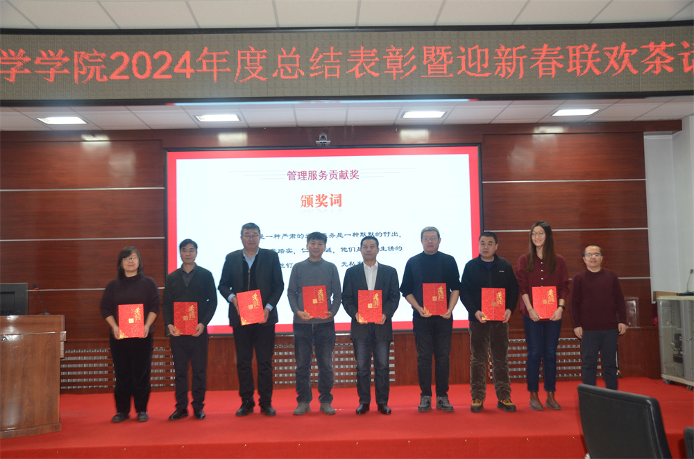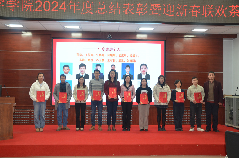 随后进入颁奖环节,主持人胡进平和贾子一宣读获奖团队、个人名单和颁奖词,公司领导分别为获得2024年度公司先进个人、先进单位、优秀员工、教书育人、科研育人,管理服务育人贡献奖的团队和个人颁奖并合影留念。