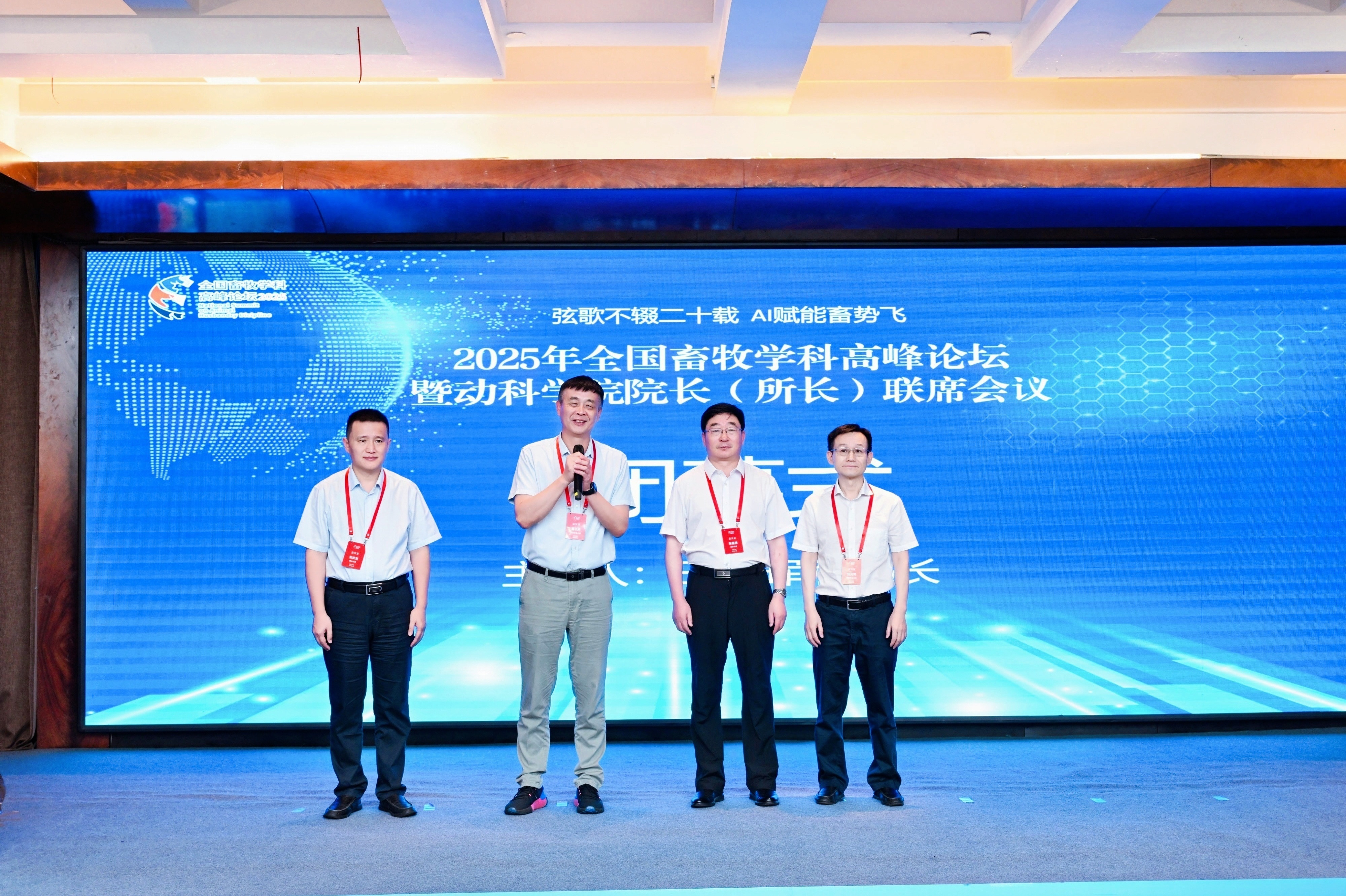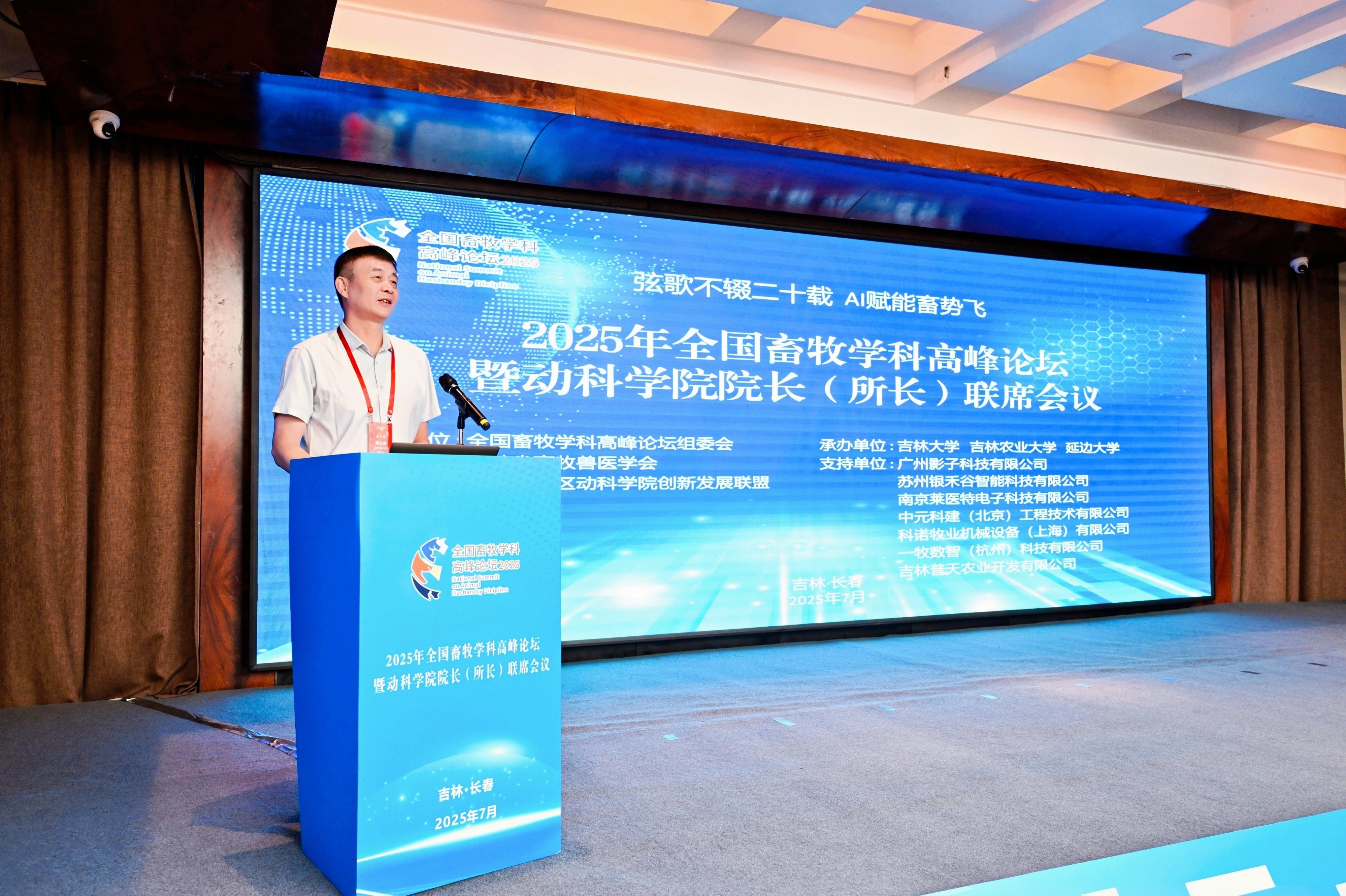 此次论坛由全国畜牧学科高峰论坛组委会主办,熊猫体育(熊猫体育)、吉林农业大学动物科技公司、延边大学农公司承办,论坛以“弦歌不辍二十载,AI赋能畜势飞”为主题。来自全国112所高校、科研院所和企业的98名公司经理、党委书记、副经理、学科带头人等200名余名专家学者、部分企业代表等参加了此次论坛。吉林省教育厅副厅长刘学军、科学技术厅副厅长付帅和畜牧业管理局副局长程文军出席论坛开幕式并致辞。熊猫体育副董事长于湘晖教授陪同董事长张希院士会见了相关专家学者并在开幕式上代表承办方致辞。熊猫体育学位办公室主任兼研究生院副经理嵇艳鞠、科研院科技管理办公室副主任郭庆参加了论坛开幕式。熊猫体育张嘉保教授获“论坛杰出贡献奖”,熊猫体育经理孙博兴教授在新一届论坛秘书处换届中当选论坛组委会副秘书长。