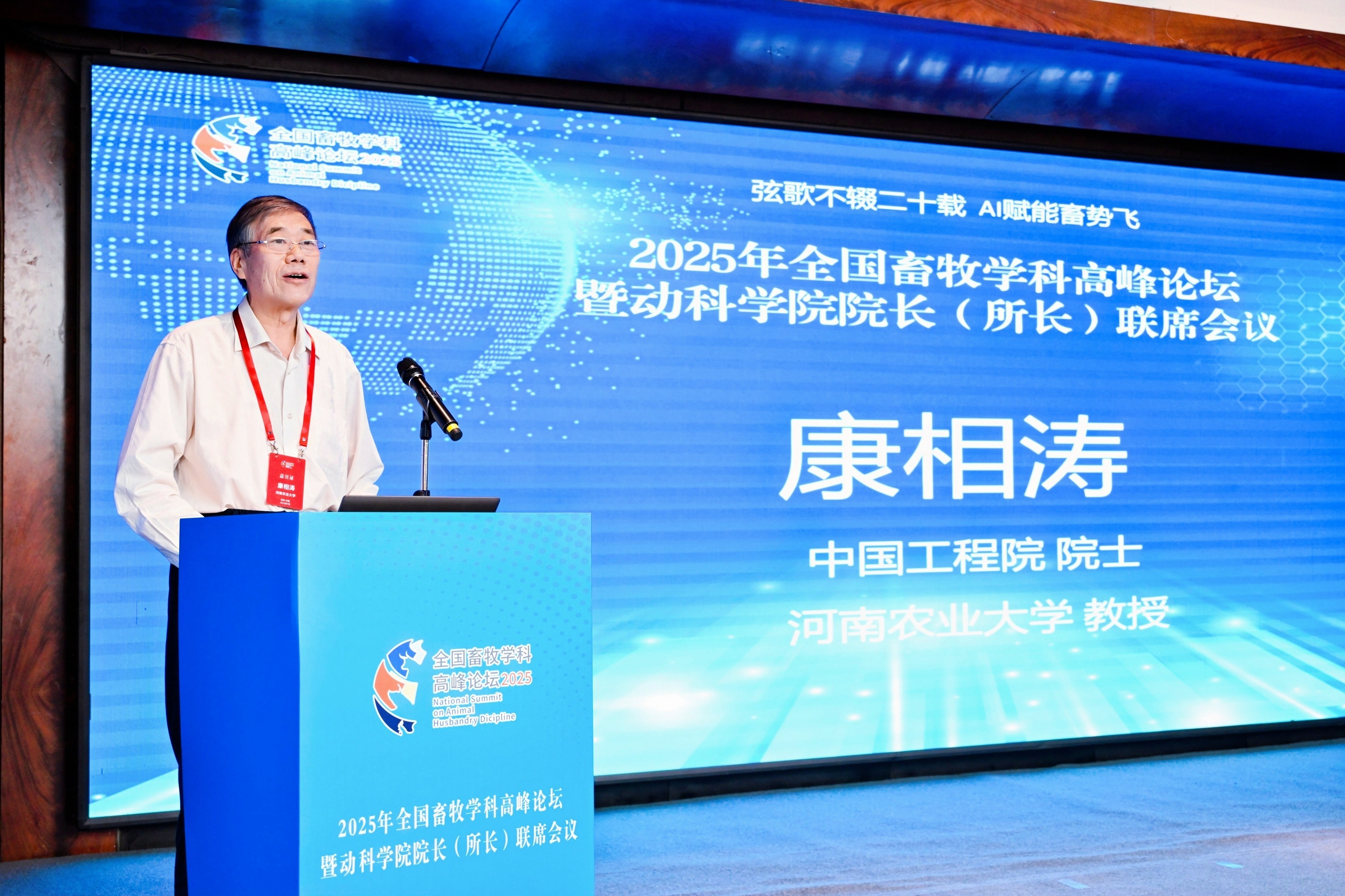中国工程院院士、本届高峰论坛主席、河南农业大学康相涛教授回顾了畜牧学科高峰论坛暨动科院经理(所)长联席会议的发展历程,并结合本次论坛的主题提出了三点思考与建议:一是锚定国家需求,把准畜牧团队建设的方向;二是聚焦新质生产力,重塑教育科技人才体系;三是强化协同联动,构建产学研用新生态。他期待依托畜牧学科高峰论坛建立全国性畜牧学科协作网络,将学科发展更好地融入中国畜牧业现代化的进程中,以教育夯基,以科技赋能,以人才聚力,为端牢十四亿中国人的饭碗提供更强力的科技人才支撑。