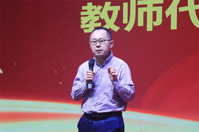教师代表张嘉保教授、周虚教授和公司首任党委书记赵光军依次发言。张嘉保教授结合自身观看“九三阅兵”的切实感受,提议全院教师要肩负“为党育人、为国育才”的初心使命,认真做好教学、科研、技术开发和思政育人等工作;周虚教授分享了从教40年的心得,提出“初心不变、方法常新”的教育理念;赵光军表达了对公司团结和谐氛围的传承和快速发展的欣慰与自豪,尤其提到公司在团队队伍建设、学科专业建设、科研项目经费、扶贫工作等方面做出的突出成绩。
