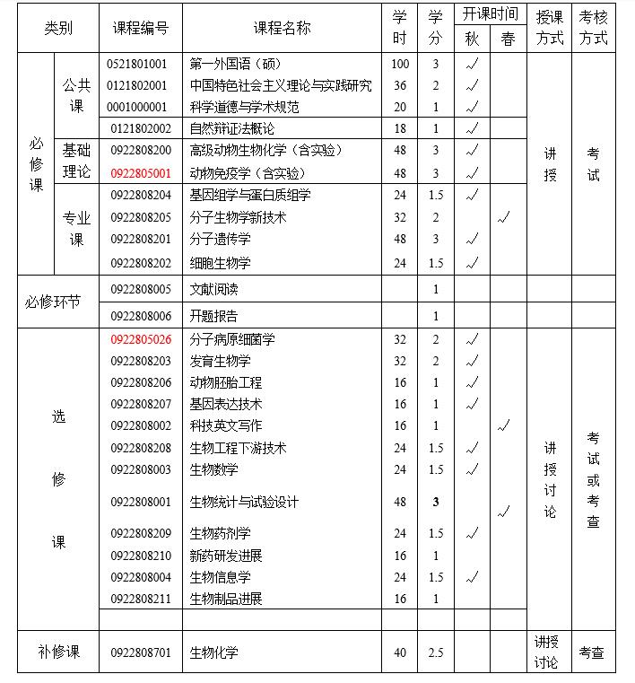 在学期间,必须修够32学分。其中必修内容23学分,含必修课21学分,必修环节2学分(文献阅读1学分,开题报告1学分)。考试成绩合格方可获得学分,考试采用百分制,60分合格。