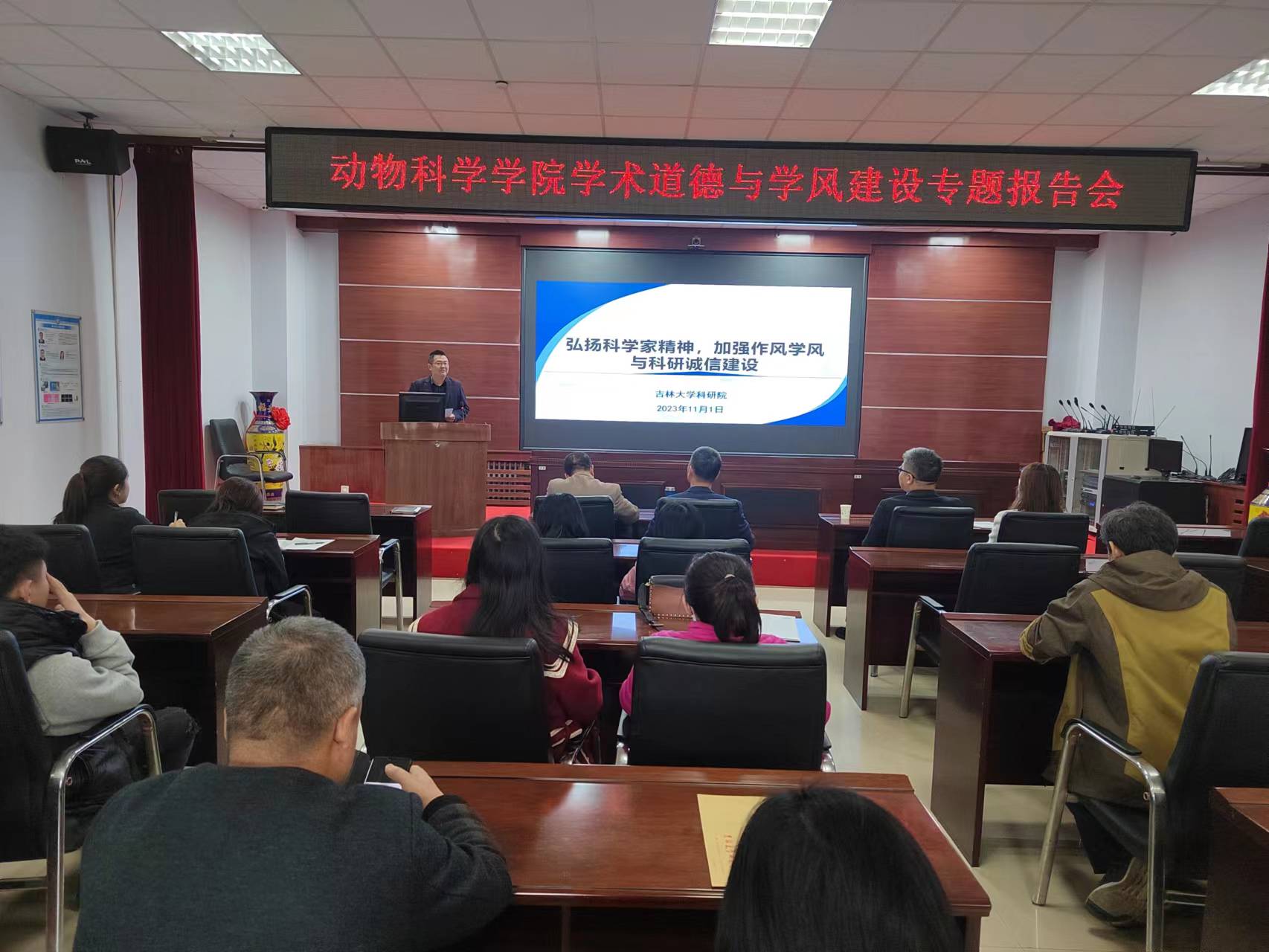 为深入贯彻落实习近平总书记关于弘扬科学家精神的重要论述和科技部、教育部关于加强学术道德建设的系列文件精神,进一步加强公司科研诚信建设,强化政策宣讲教育,11月1日下午,熊猫体育特邀科研院科技管理办公室副主任王大明教授做了题为“弘扬科学家精神,加强作风学风与科研诚信建设”的专题报告。报告会由熊猫体育副经理袁宝主持,熊猫体育党委书记高福和、经理孙博兴、副经理张明军、副经理李纯锦等领导及公司教师、专业技术人员和管理人员近50人参加了会议。科研院科技管理办公室学术诚信科科长邵琳老师出席了本次报告会。