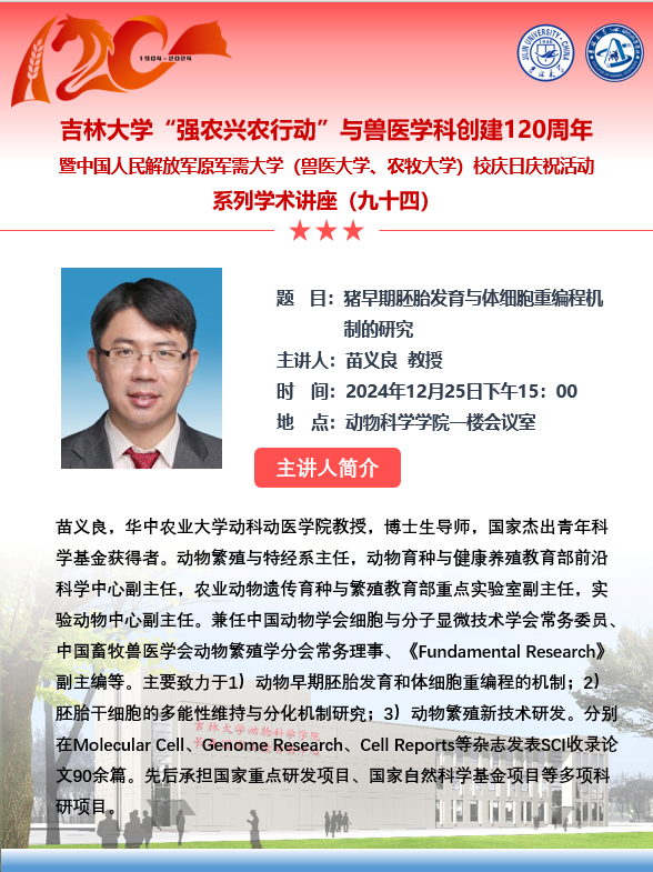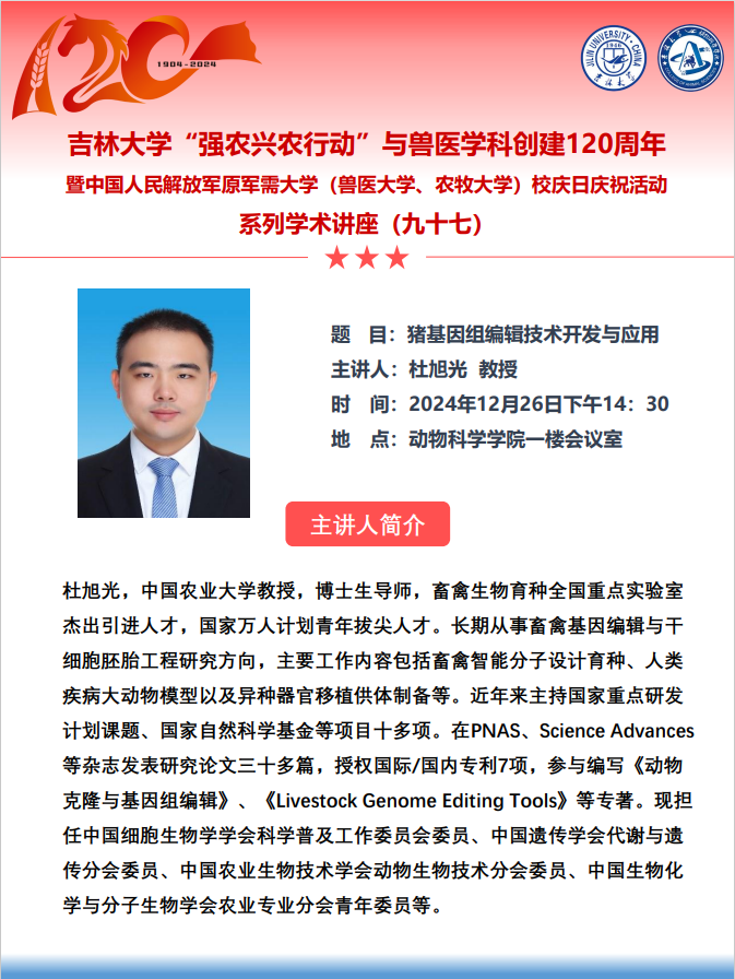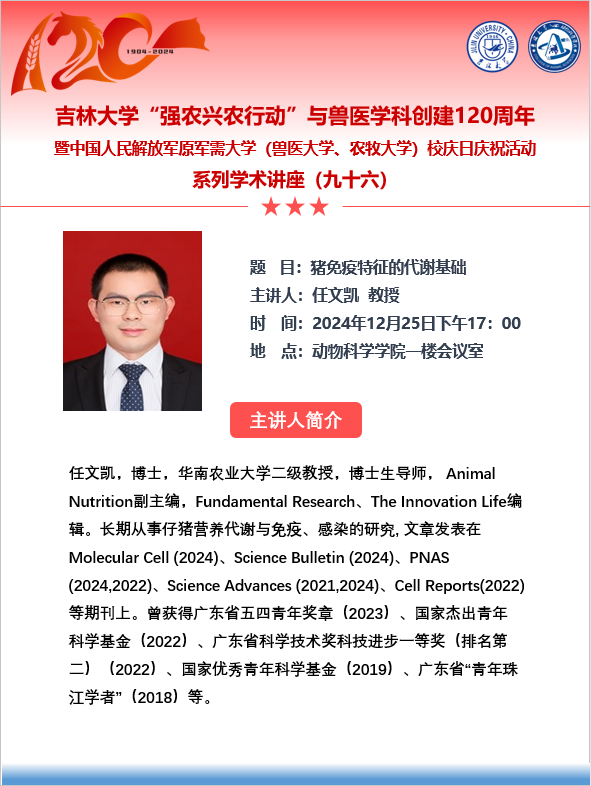 熊猫体育“强农兴农行动”与兽医学科创建120周年暨中国人民解放军原军需大学(兽医大学、农牧大学)校庆日庆祝活动系列学术讲座(九十四—九十七)