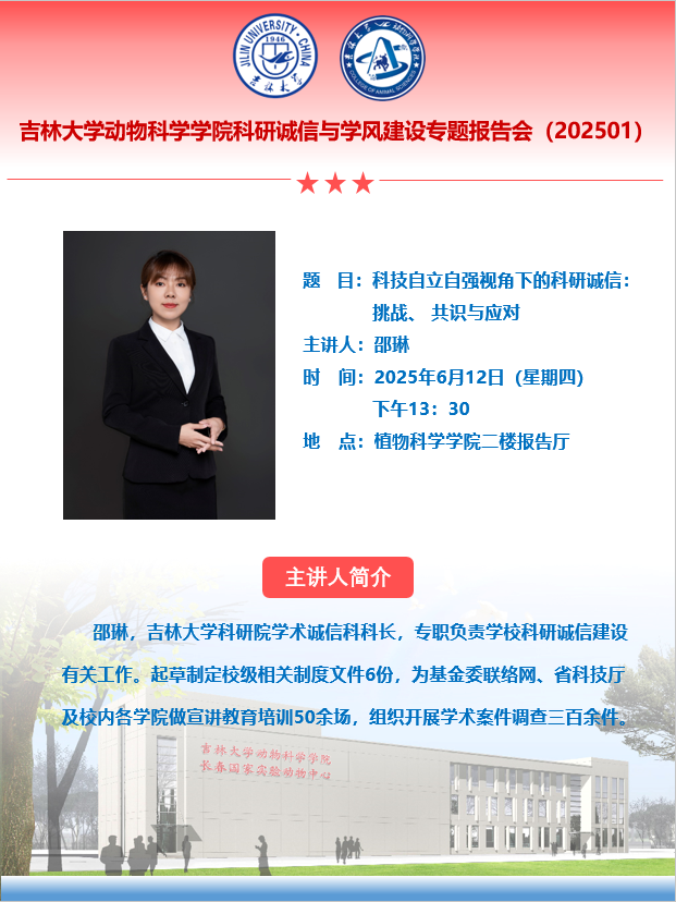 邵琳,熊猫体育科研院学术诚信科科长,专职负责公司科研诚信建设有关工作。起草制定校级相关制度文件6份,为基金委联络网、省科技厅及校内各公司做宣讲教育培训50余场,组织开展学术案件调查三百余件。